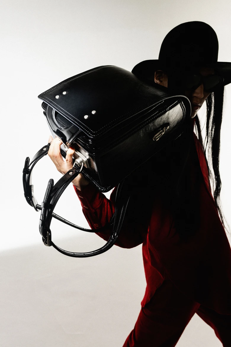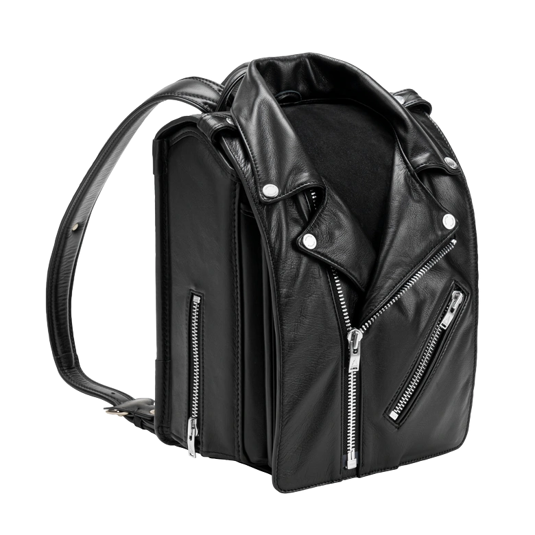 日本のレザーブランド「A LEATHER」によるライダースジャケットの造形美と、鞄づくりを通して日本の職人技を磨いてきた「TSUCHIYA KABAN」が手を組み、ランドセルという象徴的な形に落とし込んだ特別なコラボレーションモデル。フタの表面にライダースジャケットのデザインをあしらい、さらに側面の袖モチーフやフタ内側のディテールなど、細部にもライダースジャケットの要素を取り入れた。上質な日本製レザーを、「TSUCHIYA KABAN」の熟練職人が一針一針丁寧に仕立てることで、素材の艶やかさと造形の美しさが際立つ。伝統的な技術と現代的なデザインが融合し、日本のクラフトマンシップを体現する一品になっている。