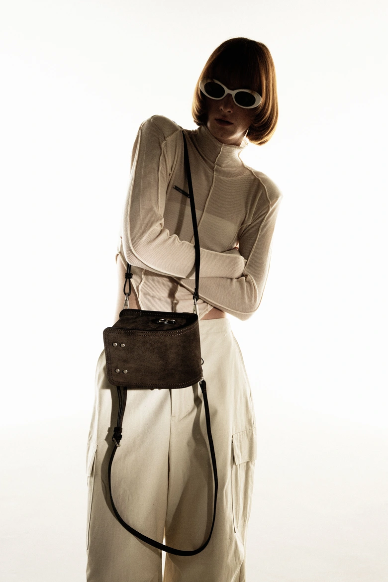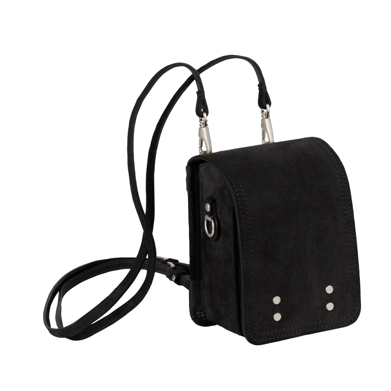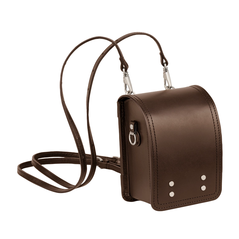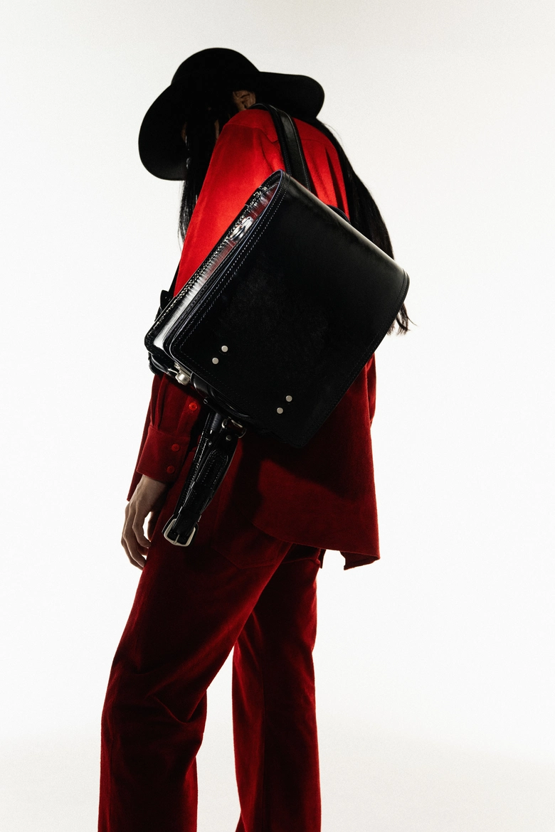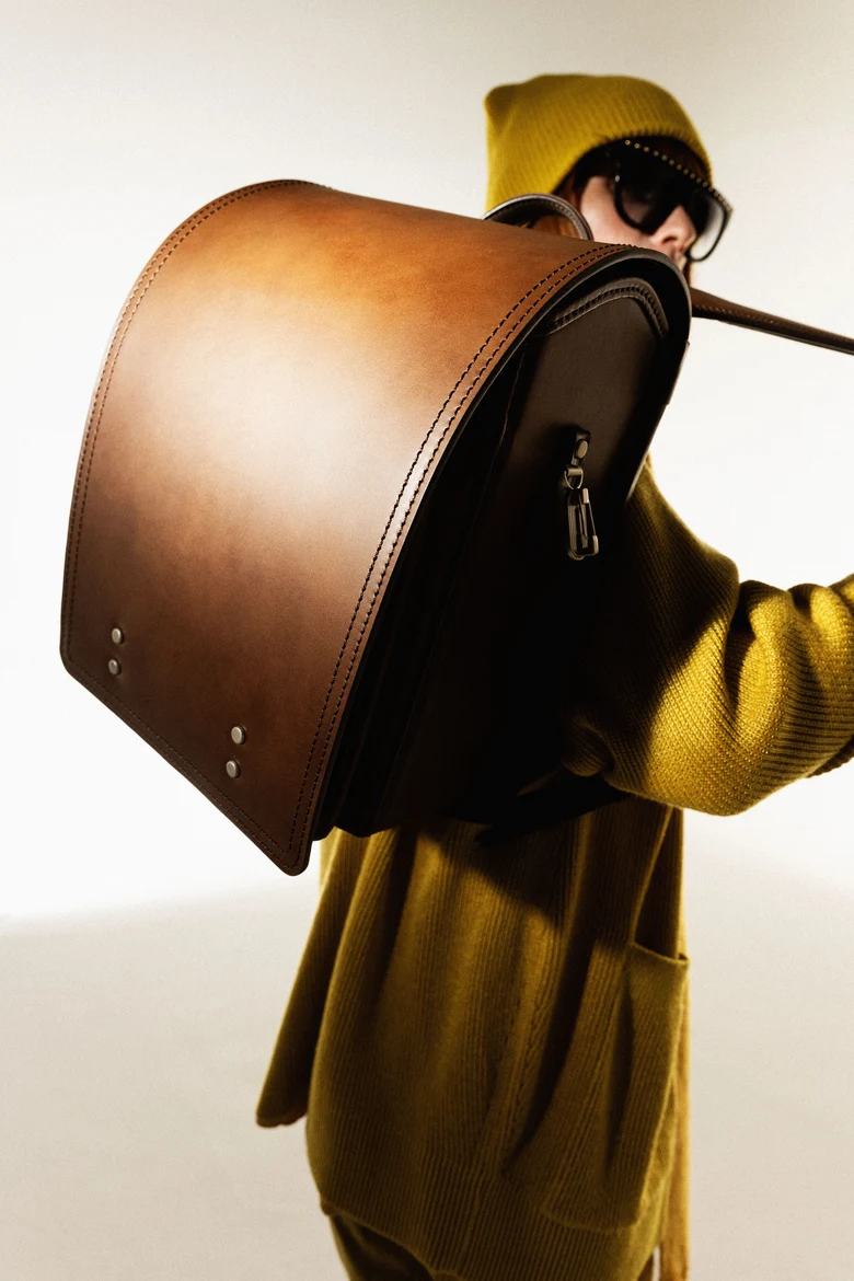 ランドセルのデザインと製法をもとに制作したミニサイズモデル。背面のクッションや堅牢な箱型のフォルムなど、ディテールの一つひとつに本格的なランドセルづくりの技が息づいている。ショルダーの付け位置を変えることで、背負いタイプとショルダータイプの2WAY仕様が可能。素材は、ナチュラルな艶を持つヌメ革、しっとりとしたタッチのイタリアンスエードレザー、細やかなシボとみずみずしい透明感のあるエナメル加工が魅力のイタリアンパテントレザーの3種が採用されている。