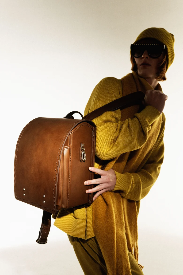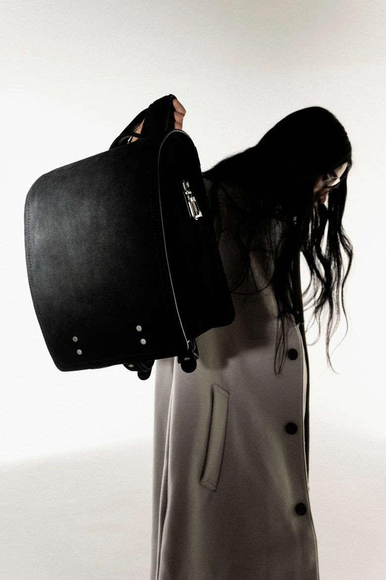 日本で親しまれてきたランドセルをベースに、大人のためのサイズと仕様に再構築したモデル。シルエットの美しさはそのままに、ハンドルやショルダーを大人仕様にアップデート。素材は、自然な風合いのヌメ革、滑らかなイタリアンスエードレザー、みずみずしい透明感を放つイタリアンパテントレザーの3種。長年培った技術と感性を生かし、職人の手仕事で美しく仕立て上げている。