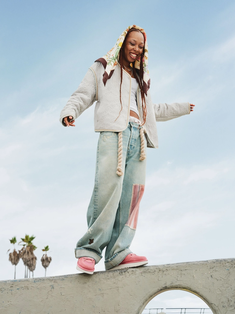 また、刺繍ディテールを加えた「Lowmel Meadow(ローメル メドウ)」は、UGGplush™ライニングとサトウキビ由来のEVAアウトソールを搭載し、快適さとサステナブルな価値を兼ね備えた一足に。オーバーサイズのタンや幅広シューレースがアクセントとなり、ストリートウェアにフィットするデザインとなっている。