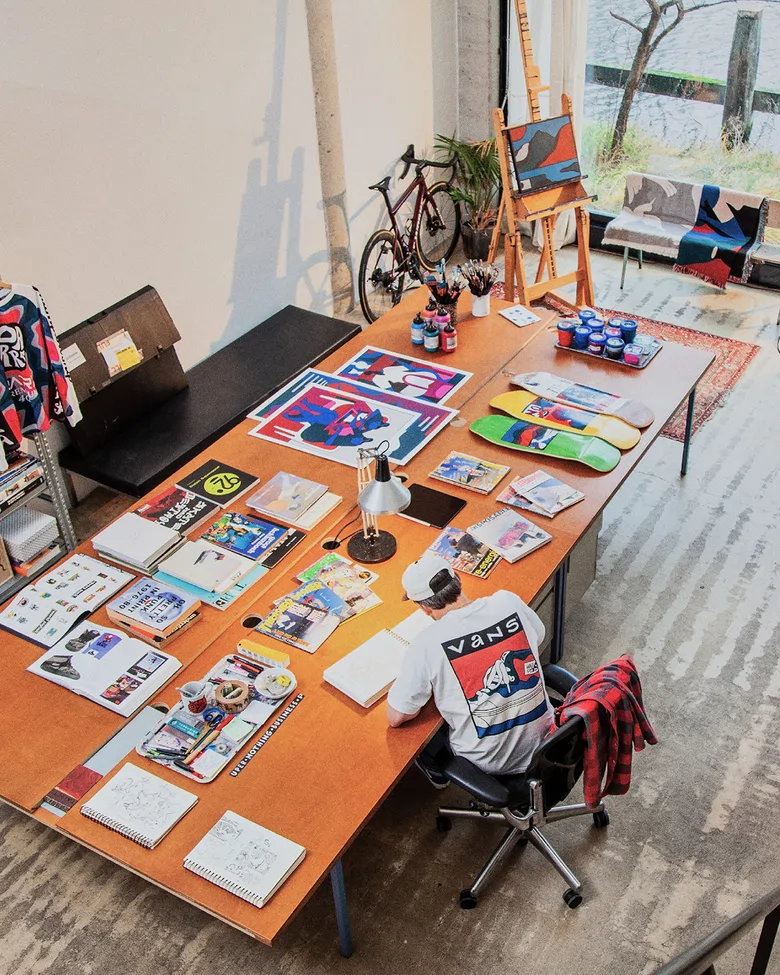 Parraは1990年代初頭にプロスケーターとして活動を開始し、<Vans>のチームライダーとしてもキャリアを築いた人物。その後、アーティストとしての才能を開花させ、現在では世界中のギャラリーや美術館のコレクションで高い評価を受けている。今回のコラボは、両者の歴史が巡り合った象徴的なプロジェクトだ。