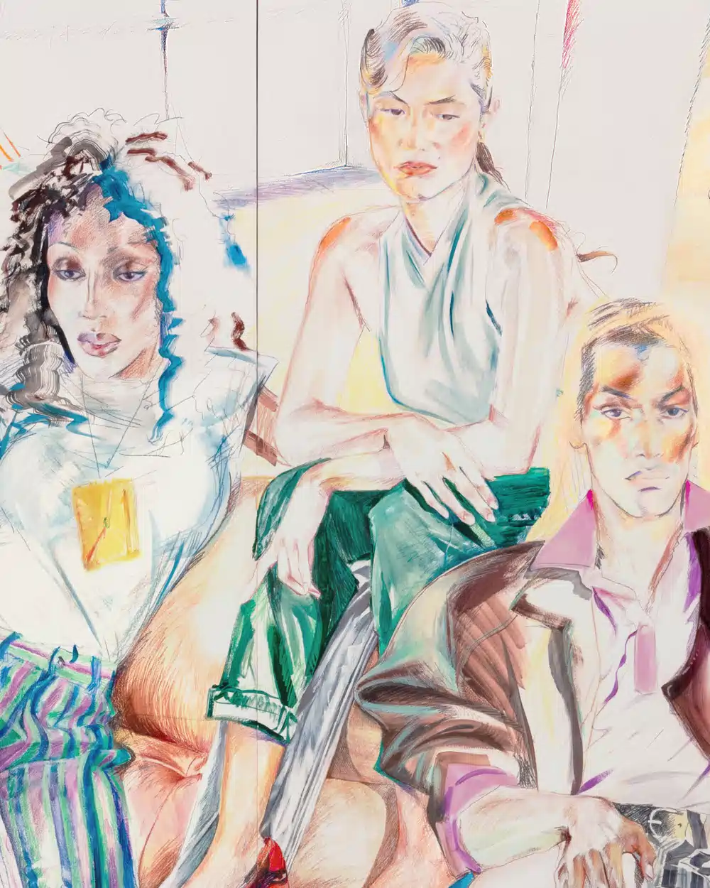 ダンスとライブドローイングを融合させるアーティスト。今回は個人ではなく「仲間の共同体」をテーマに、サグポップ(Thugpop)やキャリー・スタックス(Carrie Stacks)ら親密な人々を等身大かつ夢幻的なタッチで描き、身体的緊張と優雅さを表現した。