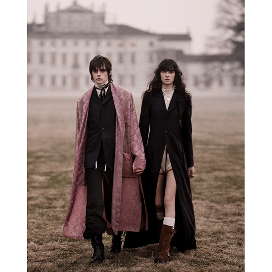 Nikolai von Bismarckが撮影し、Elodie Davidがスタイリングを手掛けた本キャンペーンは、Galliciの故郷に近い、イタリア、フリウリ=ヴェネツィア・ジュリア州にある18世紀建造の歴史的邸宅、ヴィラ・マニンで撮影された。このロケーションを選択することで、北イタリア屈指の壮麗な建築と歴史的重みを背景に、原点、記憶、そしてすばらしい風景への回帰を表現している。