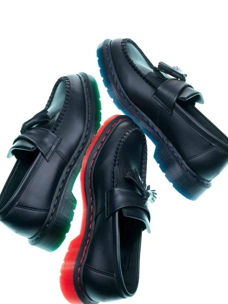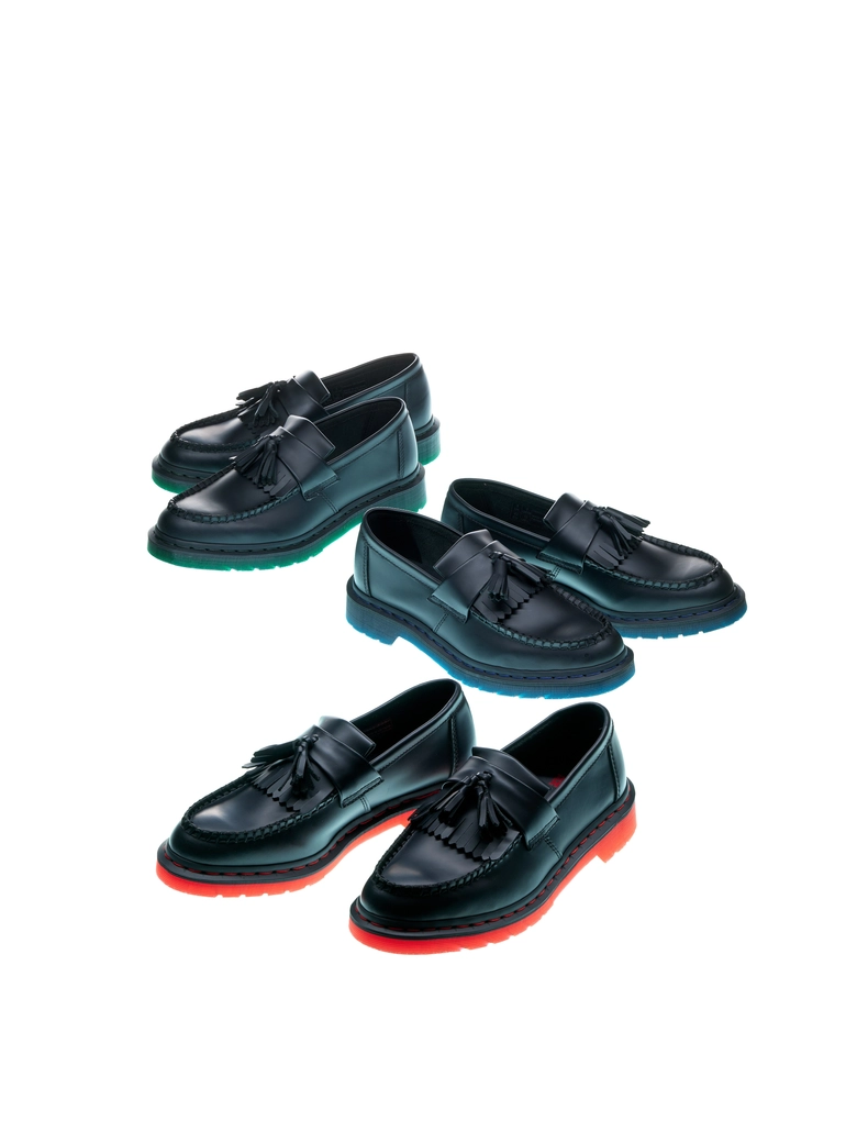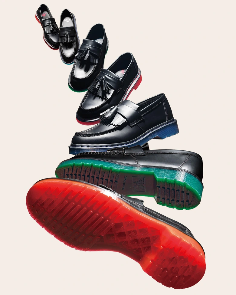 1460ブーツを筆頭に、1461シューズとタッセルローファーのADRIANのデザインとカラーバリエーションが揃うほか、ダイバースな世界に向け、すべてのスタイルがユニセックスサイズ展開であることも魅力。1460ブーツと1461シューズのレースは、フラットカラーレースでしっかりカラーを主張することもでき、シンプルに仕上げたい時にはブラックラウンドレースでまとめることが可能だ。