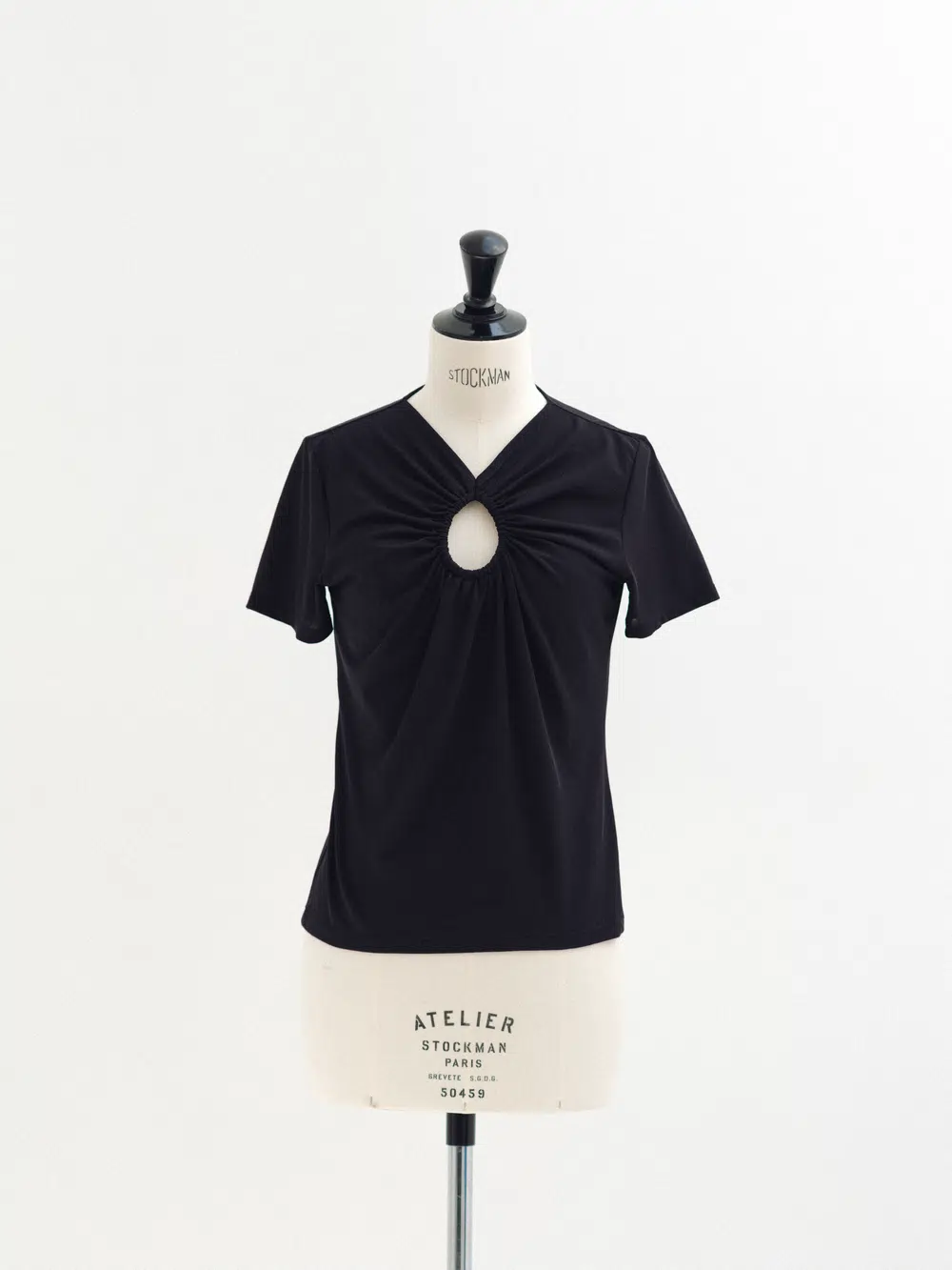 さらに、胸元のラウンドカッティングが印象的な「CUT-OUT T-SHIRT」も登場。柔らかなコットンベースのストレッチ素材を採用し、センシュアルに肌を覗かせたり、インナーを合わせてレイヤードを楽しむなど多様なスタイリングが可能だ。