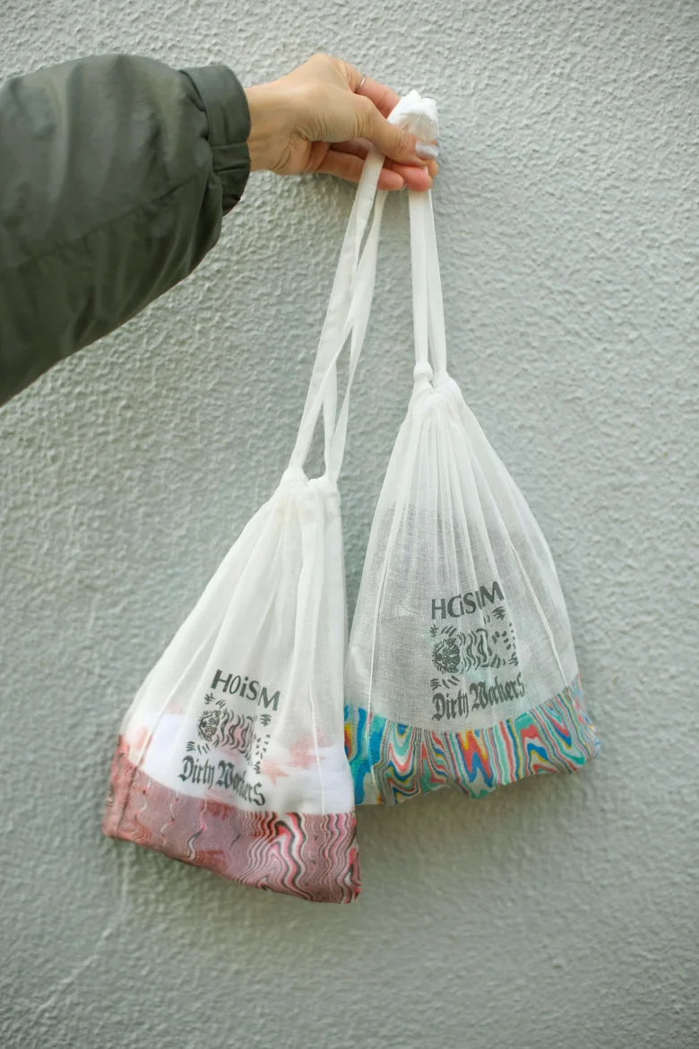 POPUP会場では、コラボレーションソックスに加え、<HOiSUM(ホイサム)>および<DWS(ディーダブリューエス)>それぞれのオリジナルアイテムも展開される。また、会場にて7,000円(税込)以上購入した来場者は、コラボレーション巾着にペイント体験ができるワークショップに参加可能だ。