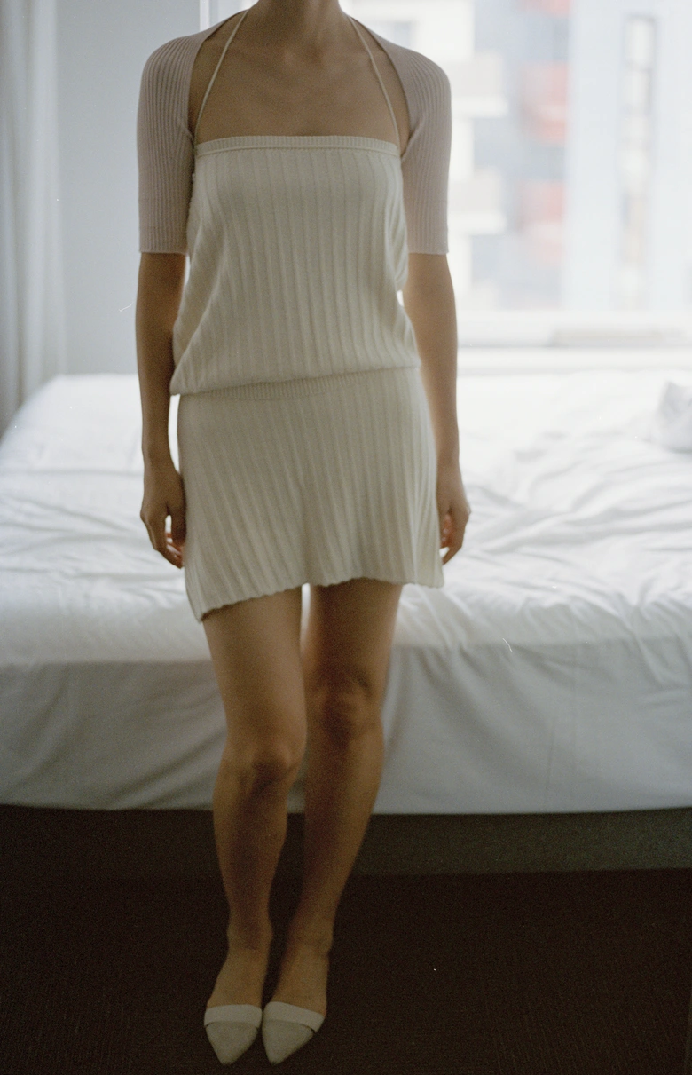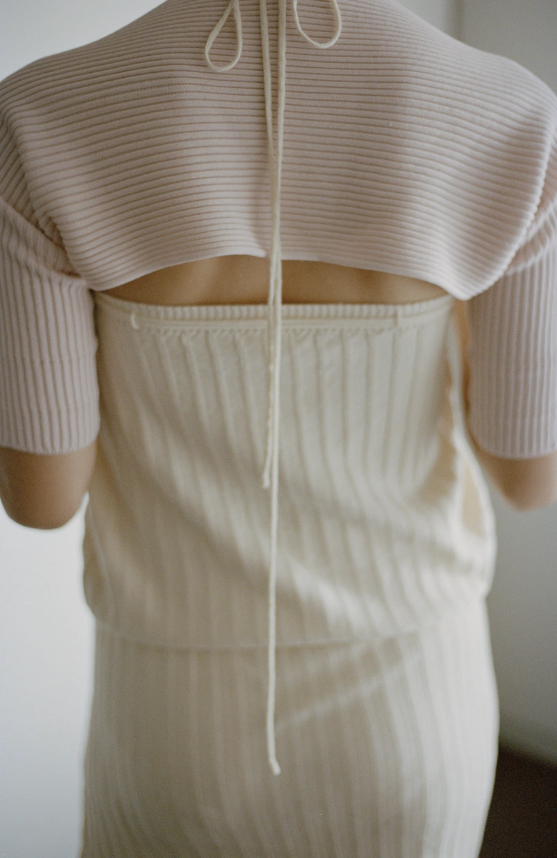 「A STRUCTURED INTIMACY」を掲げ、構造と柔らかさの均衡を通してニットウェアを再定義するブランド。身体と密接に向き合いながら、制御されたテンションやレイヤリング、露出によって親密さをかたちづくる。精緻なラインと抑制されたボンデージの参照を通して、再構築されたフェミニニティを静かな官能性とともに提示する。デザイナーのJoomi Ha(ハ・ジュミ)はCentral Saint Martinsで学び、BLESS、HELEN LAWRENCE、ROKH、CELINEなどで経験を積んだのちブランドを設立。