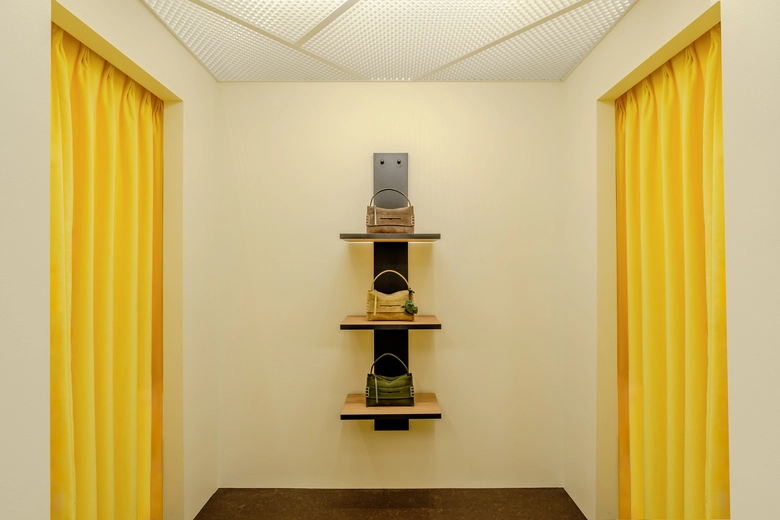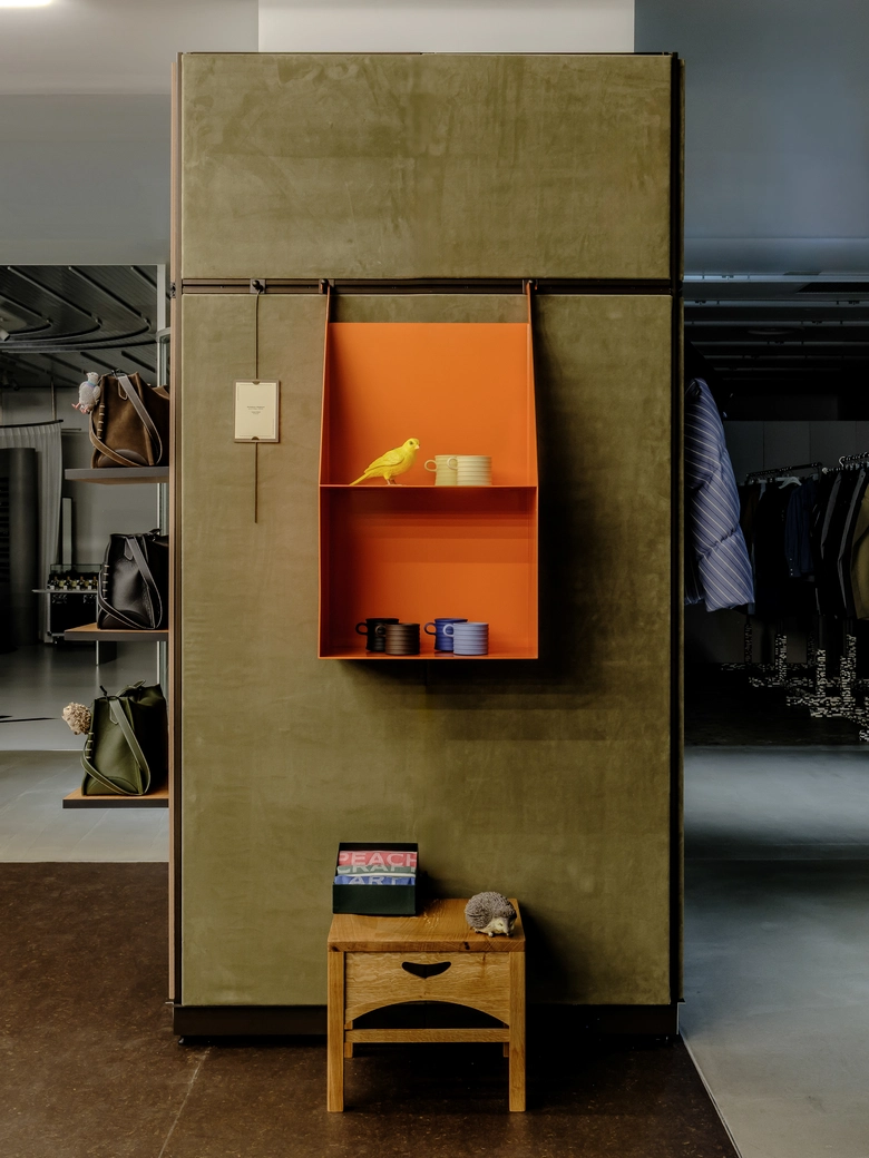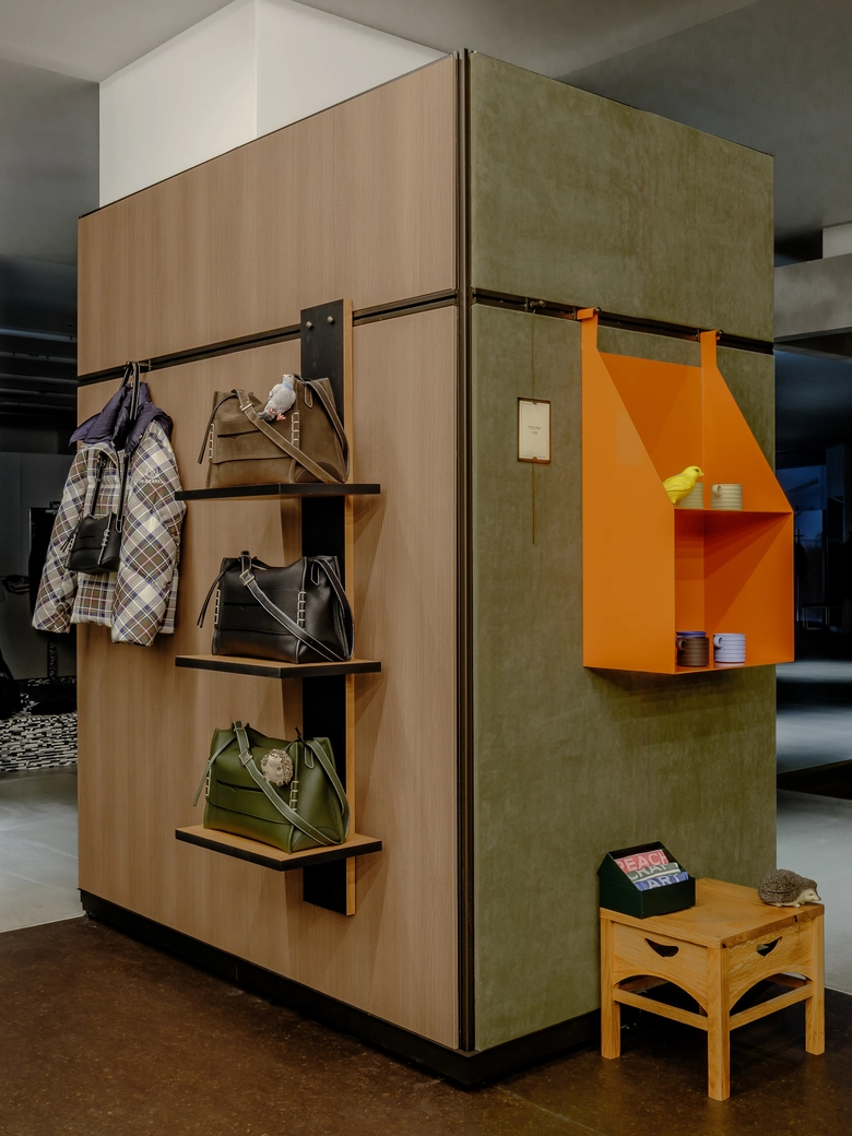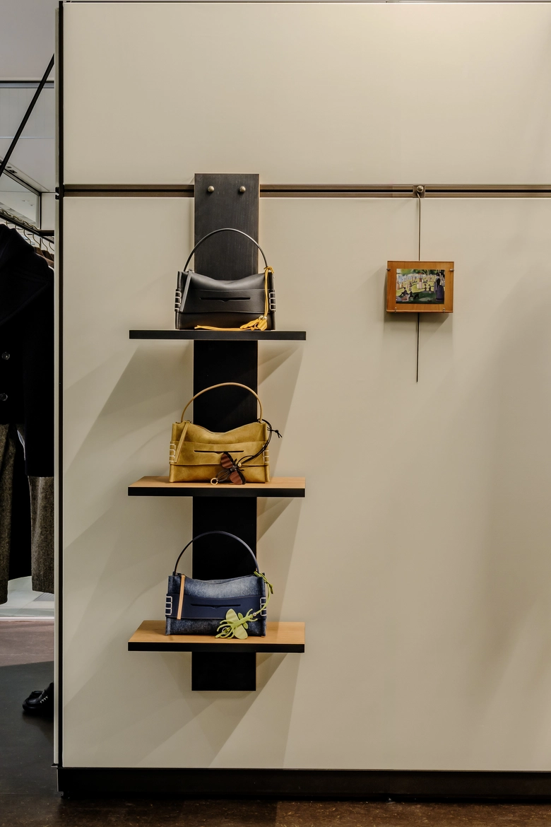 店舗設計はソーホー旗艦店やミラノ旗艦店に続き、建築ユニットのBenton Architectsが担当。手仕事の温もりを感じさせる素材で構成された空間は、柔らかく包み込むような居心地の良さを備える。