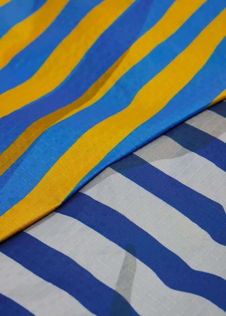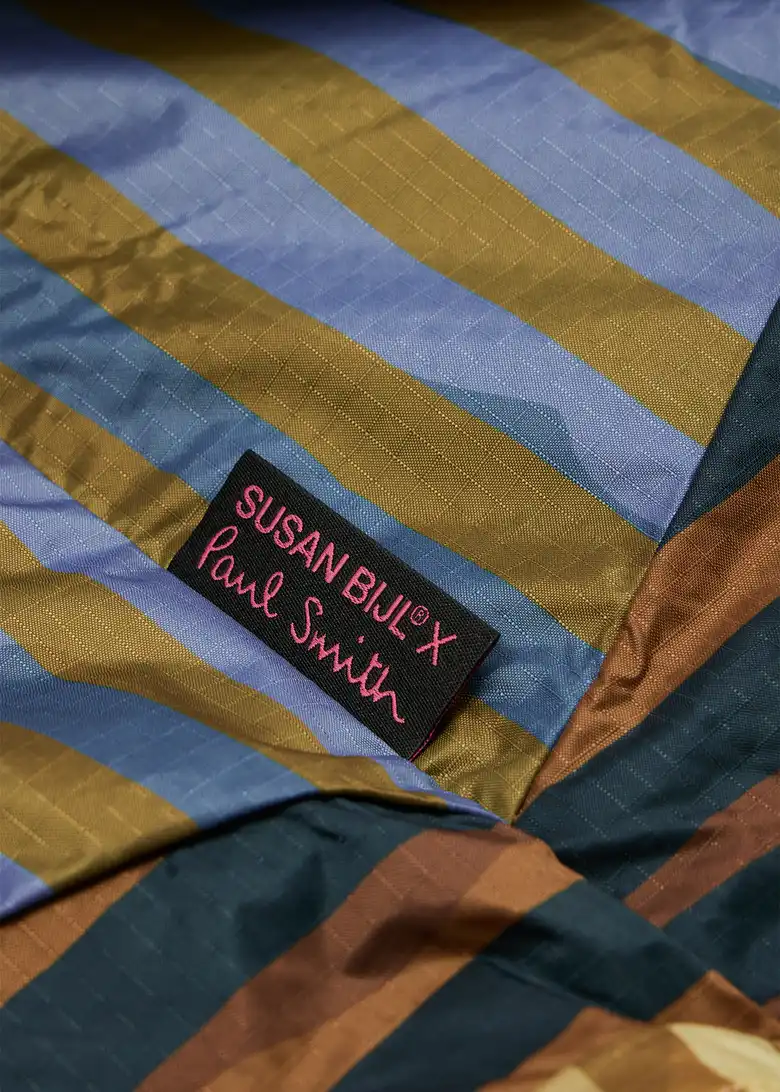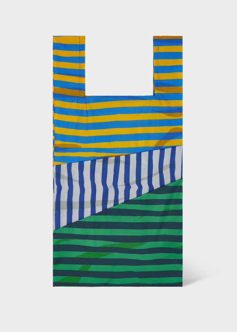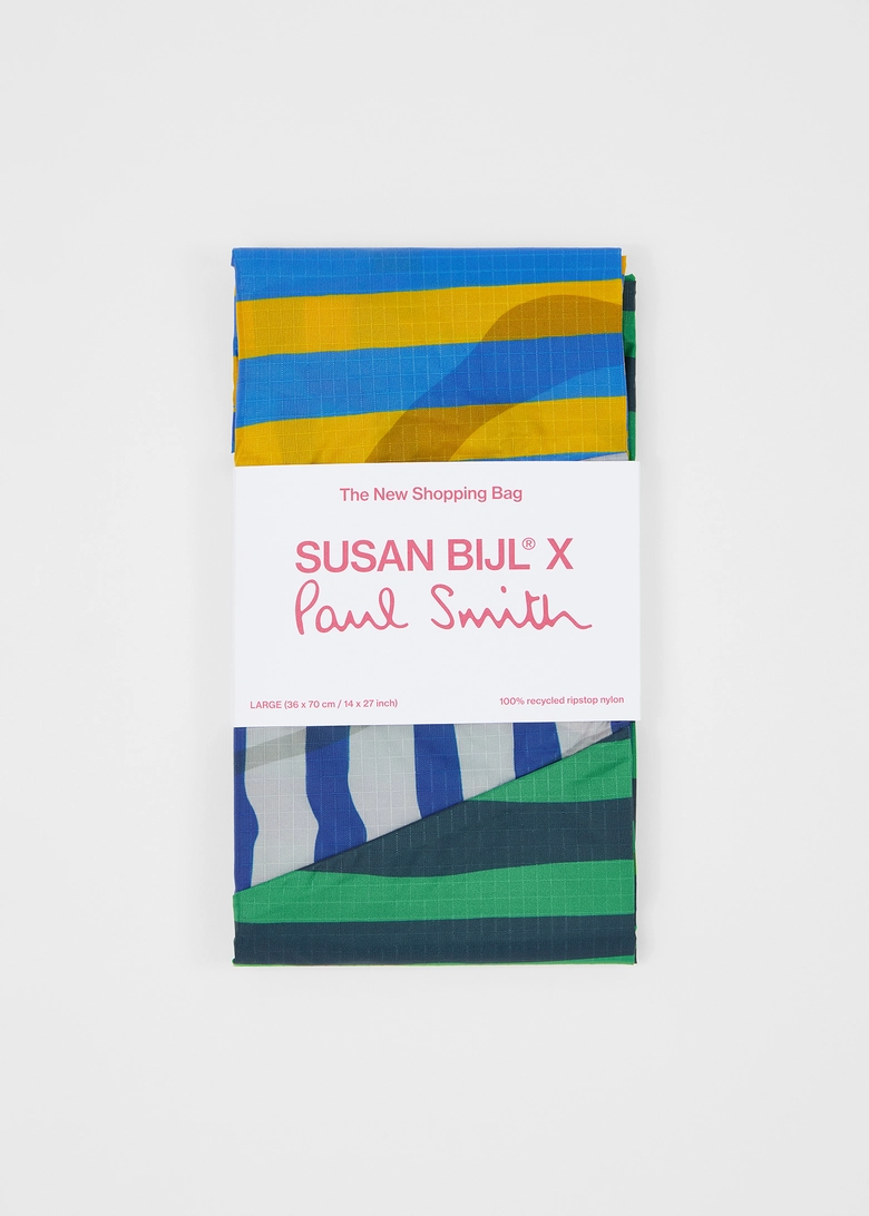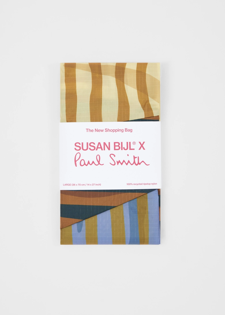 本コレクションは、<Paul Smith>の1989年春夏コレクションに登場したストライプを再解釈し<SUSAN BILJ>の「The New Shopping Bag」に落とし込んだもの。<Paul Smith>の異なる幅と色彩によるストライプと、<SUSAN BILJ>を象徴する斜めのフラッシュラインが組み合わさることで、シンプルなフォルムにリズムと印象的な表情を与える。日常に溶け込む機能性と、装いにアクセントを加える存在感を兼ね備えたデザインになっている。