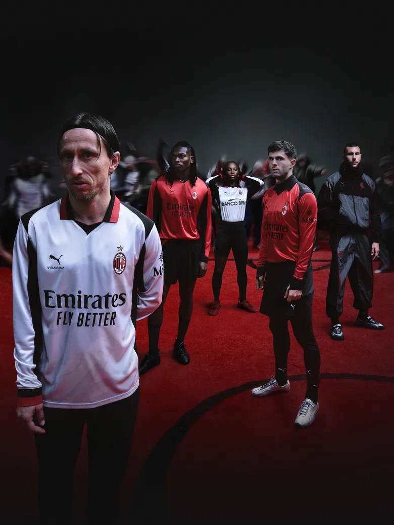 本コレクションは、ACミランのクラブアイデンティティと<SLAM JAM>が培ってきたストリートカルチャーの視点を融合させたコラボレーションである。クラブのアイコニックなモチーフとストリートの感性を掛け合わせ、キットをはじめ、ジャケット、トラックパンツ、アクセサリーなど、試合観戦はもちろん日常のスタイリングにも取り入れられるラインアップを展開する。
