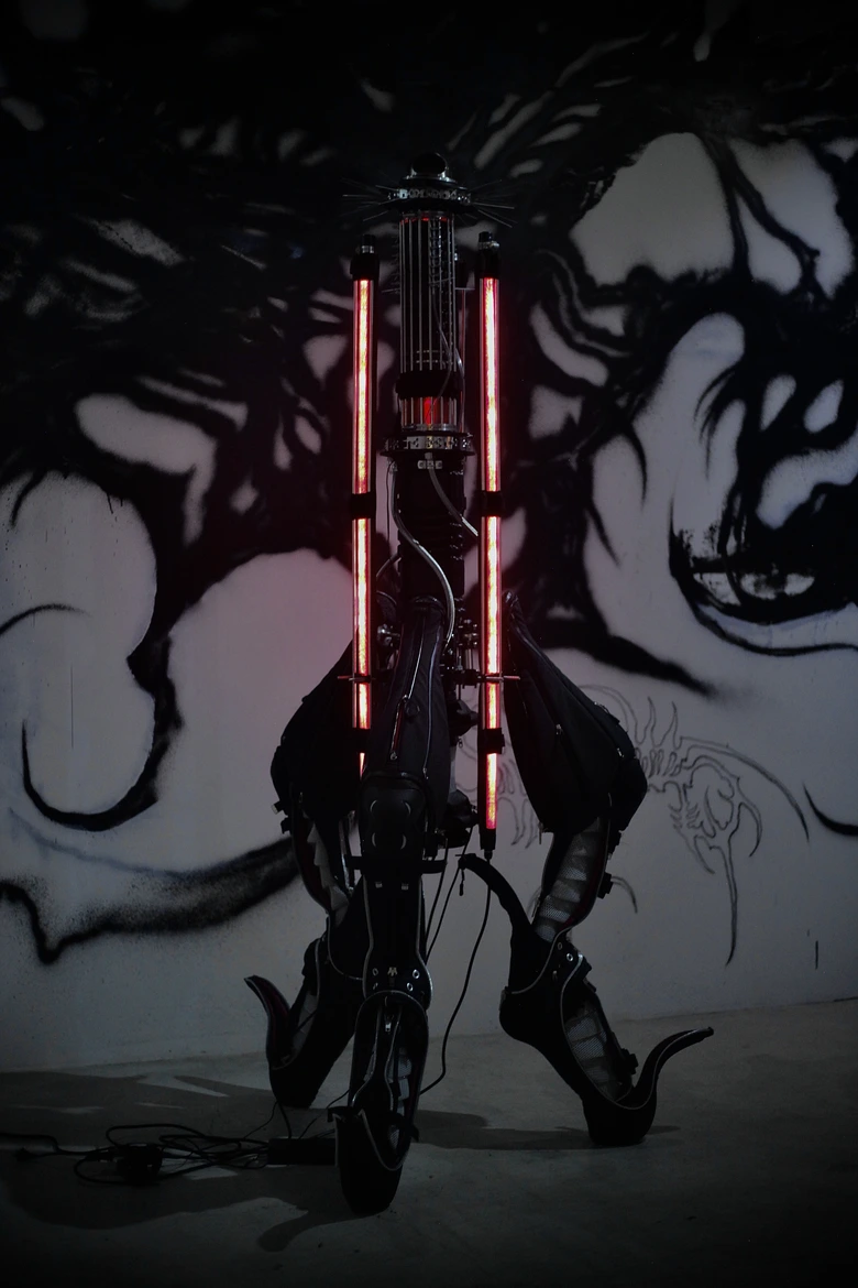 Relic, 2023 140×105×210 Fabric, stainless, steel, aluminum, light, resin latex, plastic, laser