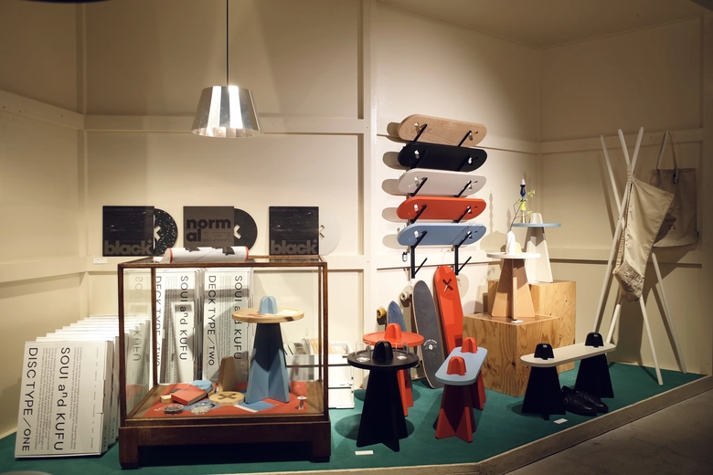 <SOUI and KUFU>は、オリジナル家具やインテリア用品を軸とする東京発のライフスタイルブランド。音楽やスケートボード、サーフィンといったカルチャーを背景に、サステナビリティの視点を掛け合わせたものづくりを行っている。環境負荷の低い素材を選び、日本の手仕事と機械技術を活かして製作。オリジナルの型式や配色を主体に(現在2型5色)、シンプルでありながらもユニークな表現で世界の暮らしへとアプローチしている。