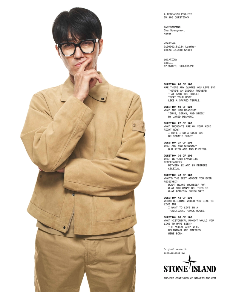 また、韓国の俳優/モデル、Cha Seung-won(チャ・スンウォン)が着用するのは、今シーズンを象徴するスペシャルピースのスエードジャケット。スタンドカラー仕様の本アイテムには、牛革の厚みを調整するスプリッティング工程によって生まれる耐久性の高いクラストレザーが採用されている。テクスチャーの際立つタフな表情を備えながら、あえて異なる切りっぱなしのパーツを組み合わせることで、インダストリアルな印象を際立たせている。
