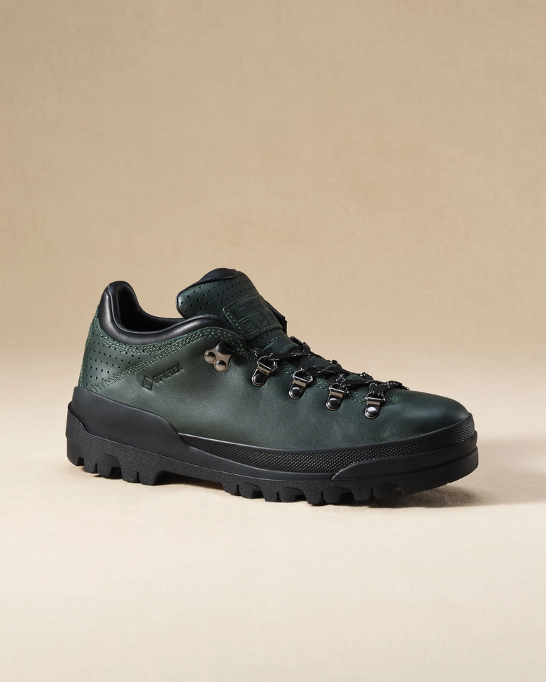 日本では約10数年ぶりの復刻となる注目モデル。国内初展開となるローカット仕様に加え、ゴアテックス®︎を搭載し、ダークグリーンとブラックをラインナップする。