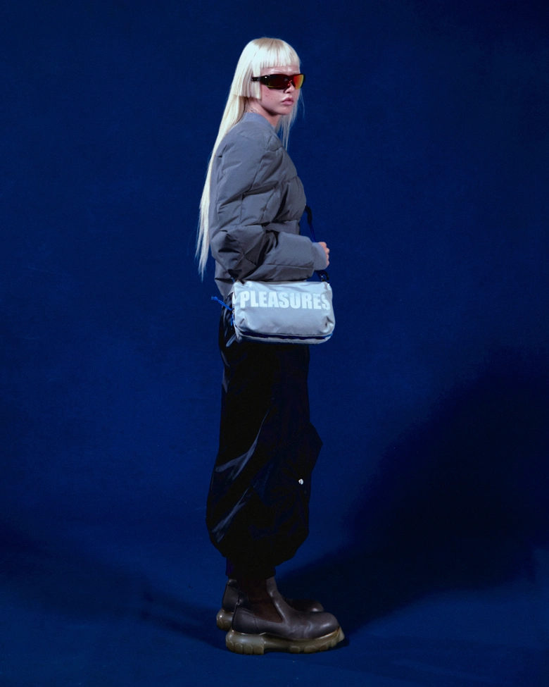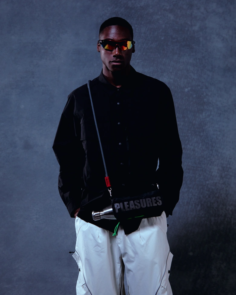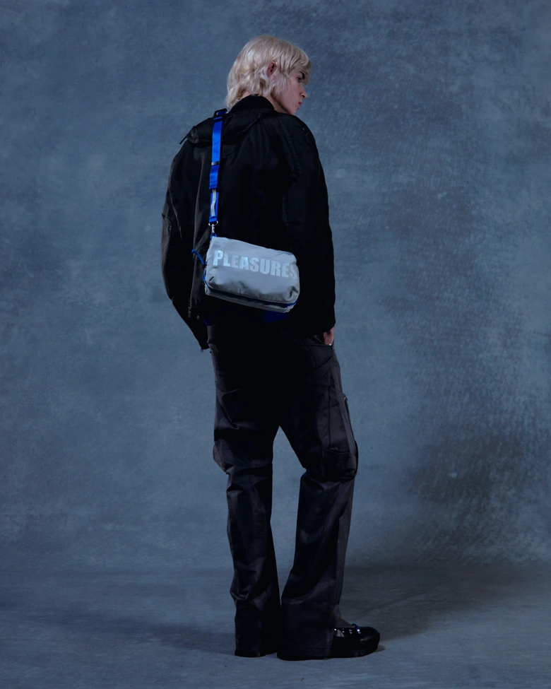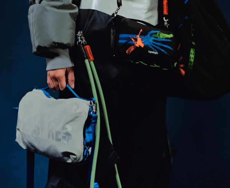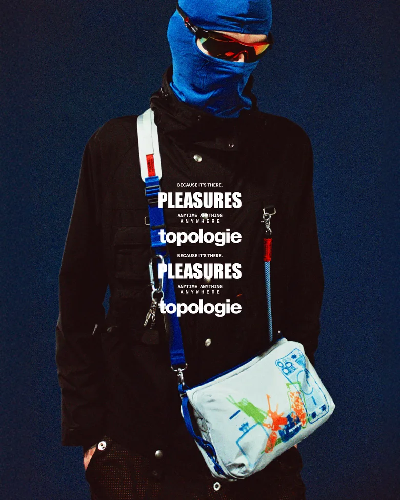 本コレクションでは、搭乗ゲートからストリートまでをシームレスにつなぐ設計思想のもと、Wares SystemTMバッグをはじめ、ストラップやスマートフォンアクセサリーまで幅広く展開。<Topologie>を象徴する機能的かつ洗練されたシルエットに、<PLEASURES>が持つ反骨精神を融合させたデザインが特徴だ。