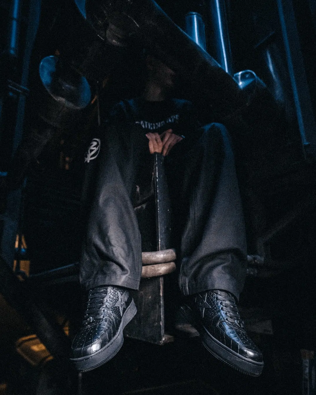 会場では、コラボレーションライン「mastermind A BATHING APE®」を中心に、最新コレクション「mastermind A BATHING APE® 18TH」を同時発売。両ブランドにとって18回目となる今回のコラボレーションは、“パンク”という反骨の美学をテーマに、DIY精神や反体制の姿勢をグラフィックとして再構築している。