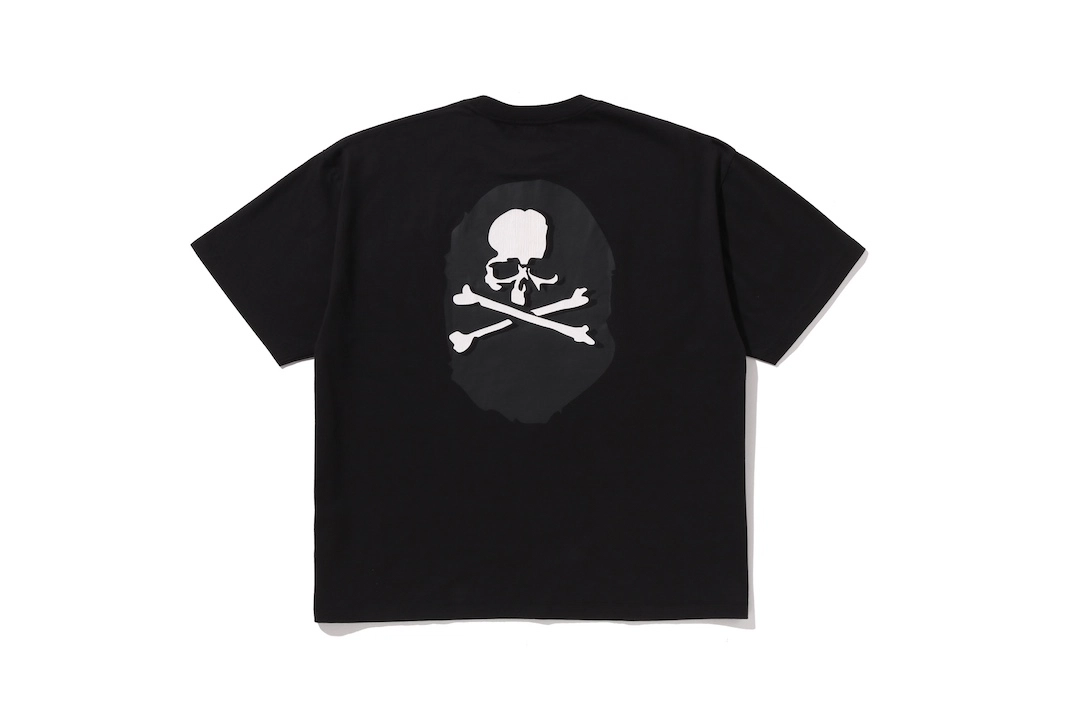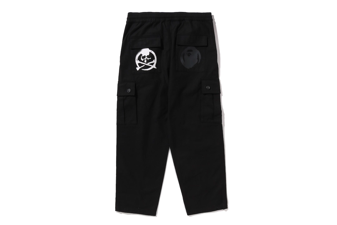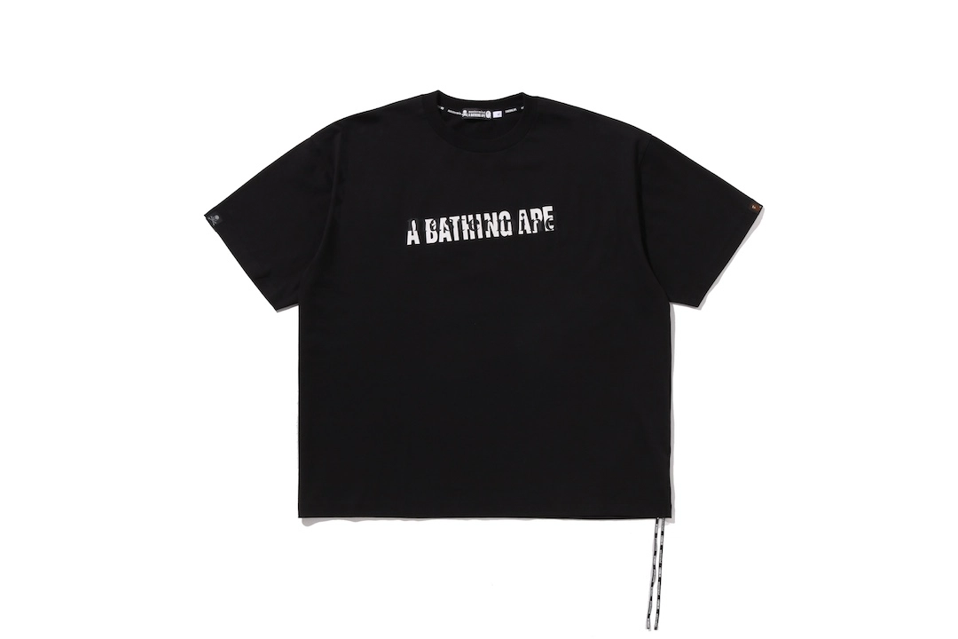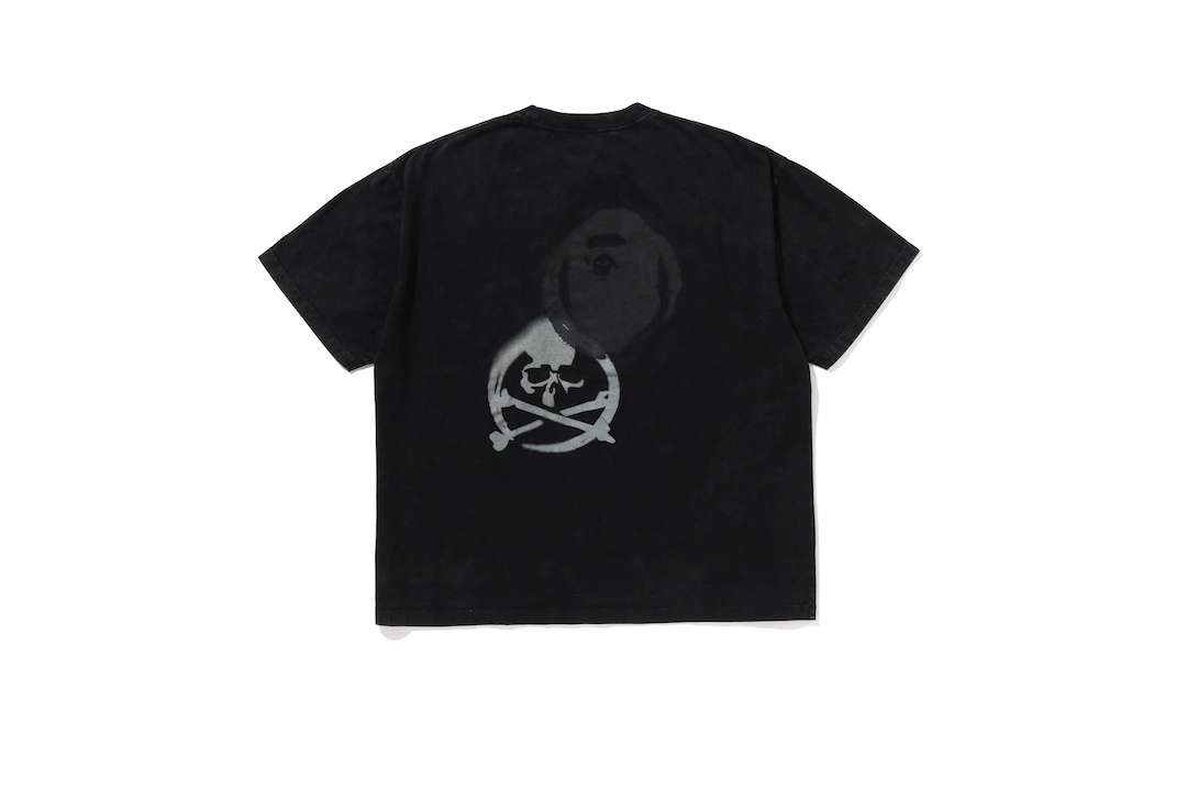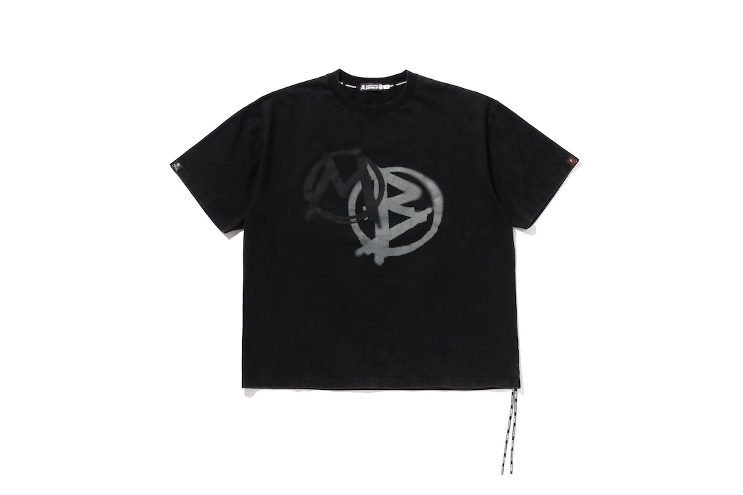 本コレクションは全6型で構成され、Tシャツ2型、クルーネックスウェット、ボンバージャケット、カーゴパンツ、BAPE STA™をラインアップ。両者のイニシャルである「M」と「B」をスプレーペイントで表現したモチーフや、“A BATHING APE®”と“mastermind”のロゴを融合させた新たな「mastermind BAPE® LOGO」が象徴的に用いられている。