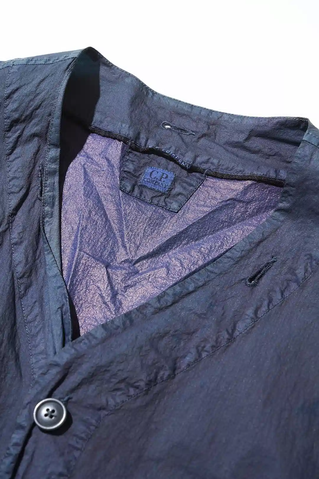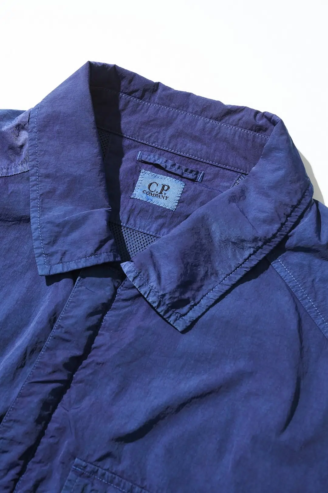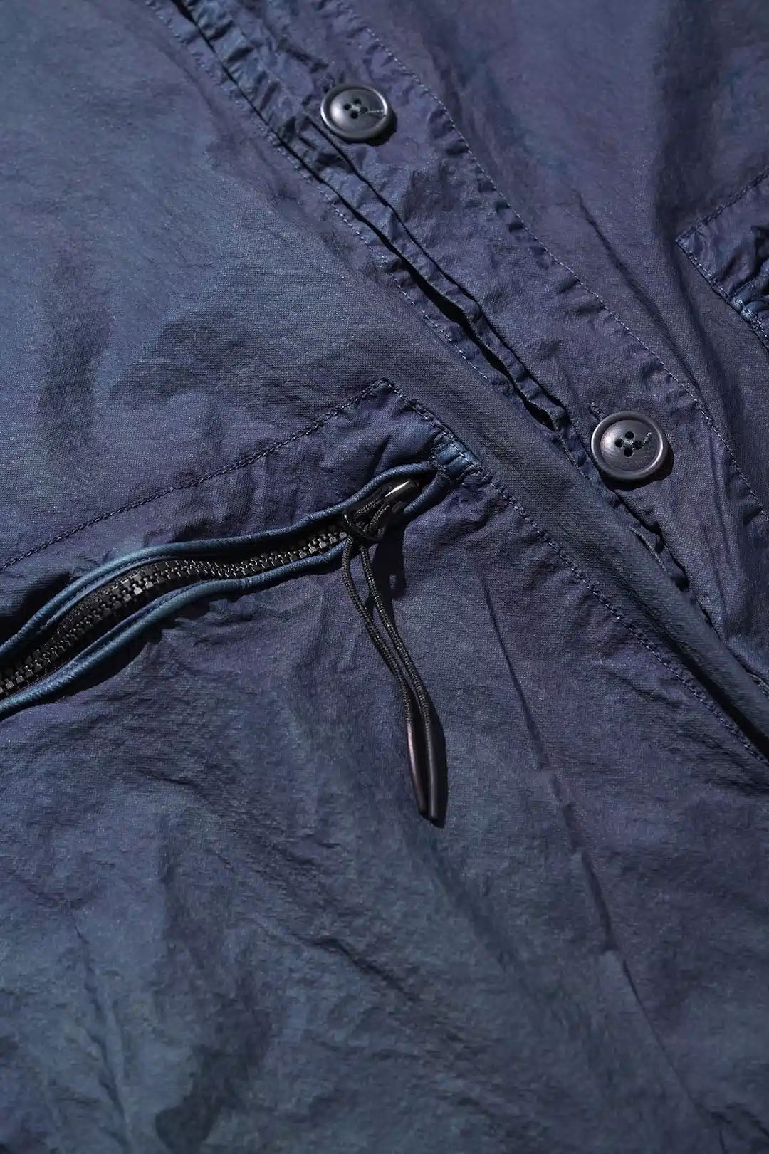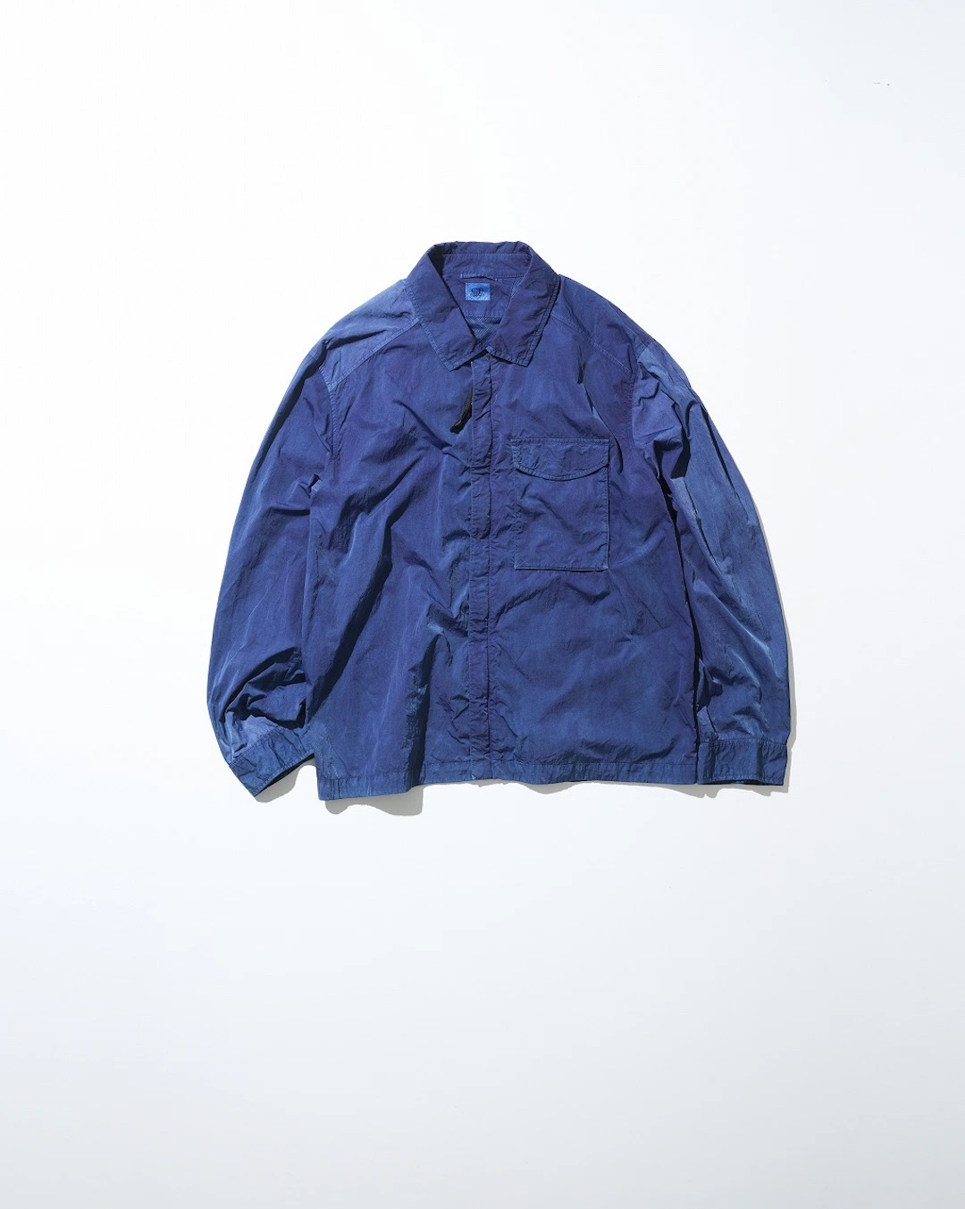 藍染には天然藍を使用。人類最古の染料の一つとされる藍は、日本では“JAPAN BLUE”として世界的に知られた存在だ。南国特有の気候条件のもとで発色する鮮やかな青は、<C.P. COMPANY>の機能的なプロダクトに新たな表情と奥行きをもたらしている。