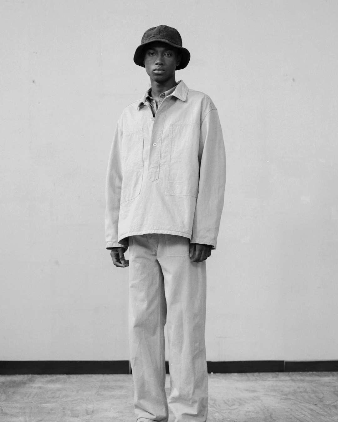 深く静謐な色合いが特徴の屋久杉染めや、年輪のような模様を描く墨流しなどの伝統技法を用い、時代の変化によって失われつつある手業や作法の中に刻まれてきた文化や人々の想いを表現。衣服を通して、時間の層を重ねるようなものづくりを提示する。