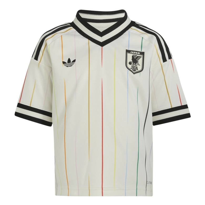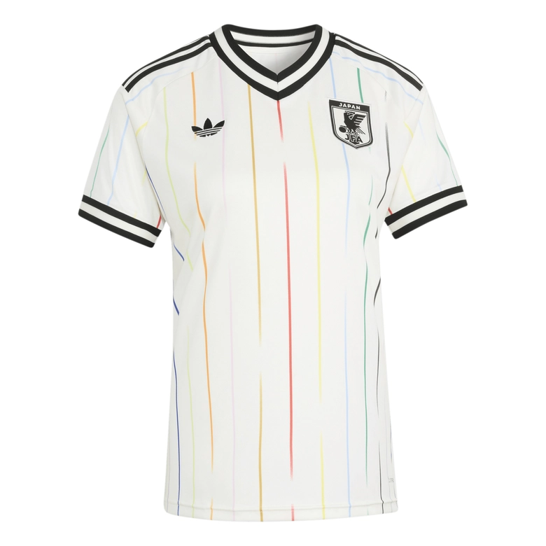デザイン面では、1995年以来となるトレフォイルロゴを採用し、モノクロ仕様のJFAエンブレムやヘリンボーン調のスリーストライプスにより、クラシカルかつ日常にも取り入れやすいスタイルに仕上げている。さらに選手着用モデルにはトレフォイルロゴのオーセンティックバッジを配置し、クラシカルなブラックとホワイトの組み合わせでファッション性も高めている。