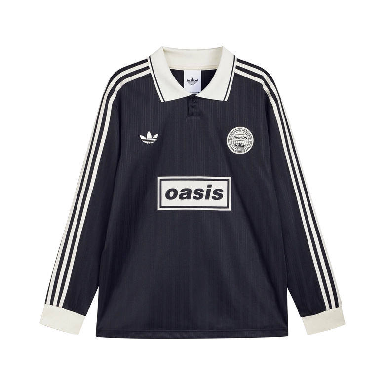 リアム・ギャラガーが1990年代にチャリティマッチで着用したことでも知られる、フットボールのテラススタイルを想起させるツアー ジャカード ジャージーは、ブラック(長袖)、クリームホワイト(半袖)、カレッジグリーン(半袖)の3色展開。また、ツアー スリーストライプス Tシャツは、ナイトインディゴとカレッジグリーンの2色が展開される。まさにOasisの年であった2025年を追想する、ノスタルジックでカジュアルなコレクションが完成した。