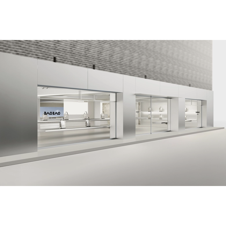空間デザインは吉岡徳仁が手がけた。吉岡はこれまでパリ、ミラノ、ロンドンなどにおける<ISSEY MIYAKE(イッセイミヤケ)>の旗艦店デザインを担当してきた実績を持つ。「BAO BAO ISSEY MIYAKE / AOYAMA」では、ミニマルな空間の中に、巨大なアルミニウム製テーブルがまるで重力から解き放たれ静かに浮遊しているかのように配されている。
