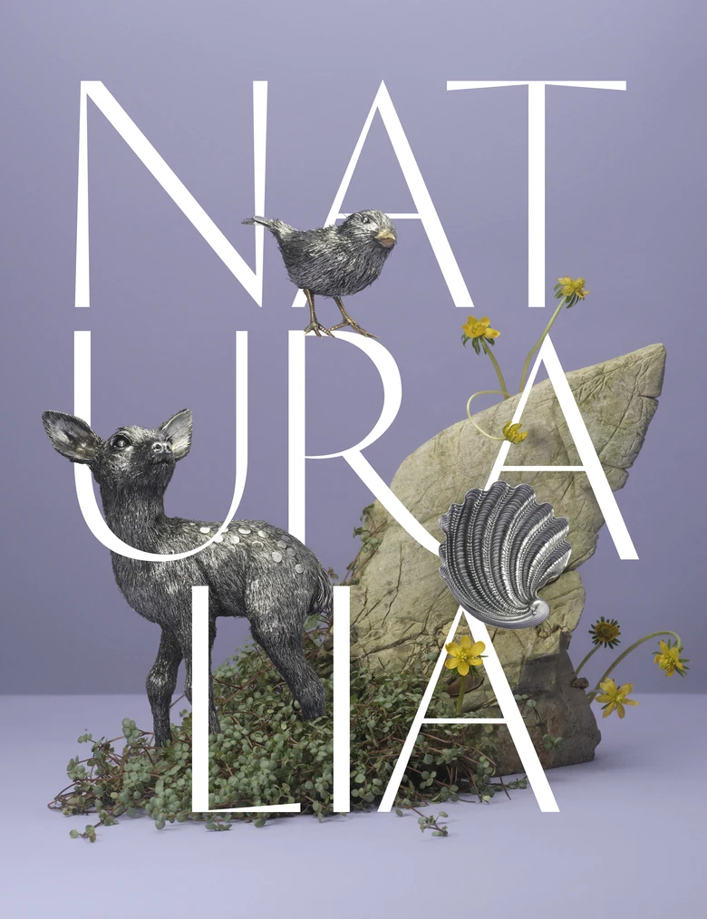 また同時に展開される「Natura」シルバーウェアコレクションでは、葉や花をモチーフにした作品を通して自然の美しさを表現。森の枝葉の間から鹿、ウサギ、リスが顔を覗かせる情景が、時を超える物語を静かに語りかける。