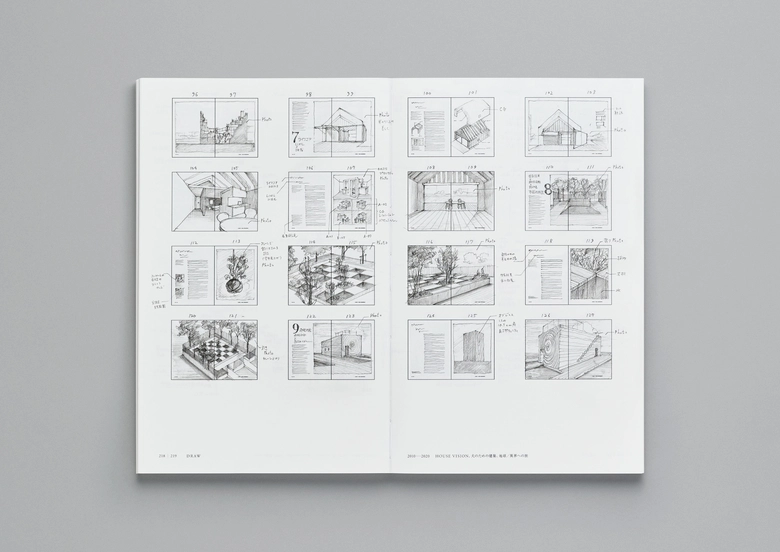 会場では、『DRAW』に収録されたドローイング作品を中心に、思考の跳躍の痕跡として残された素描、展示構想や設計のプロセスの中で生まれた書籍のラフスケッチなど、多岐にわたる原画を公開。頭の中に去来する不安定な着想を、この世界へ引き出す行為としてのスケッチが、原研哉のクリエイティブの起点として立ち上がる。