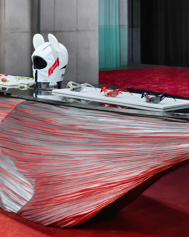 同コレクションは、レーシングカーの構造的要素を<GENTLE MONSTER>ならではの視点で再解釈したアイウェアシリーズ。スポーツとファッションの境界を越えた美学を提案する。