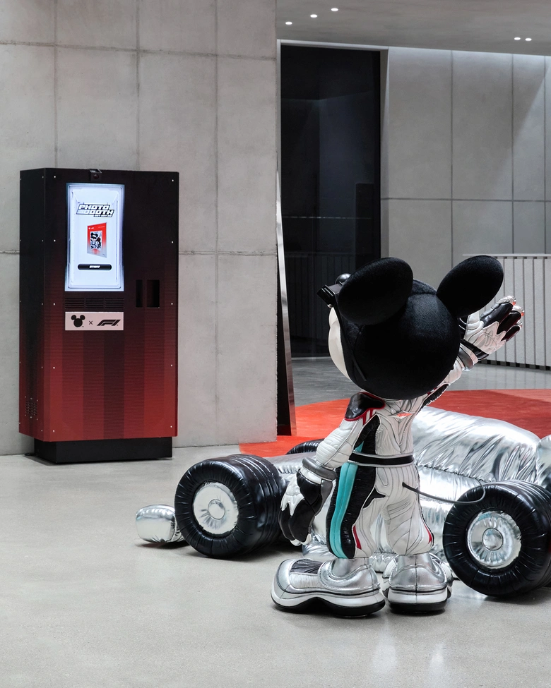 発売を記念し、本コラボレーションのテーマを活用した特別なポップアップも開催。会場はソウルと上海の2都市で、実際のF1®マシンが展示された空間が展開される。巨大な「ミッキーマウス」オブジェと精巧なF1®マシンが共存する演出により、スピード感とファンタジーが交差する体験を提供。また「ミッキーマウス」テーマのフォトブースも設置され、今回のコラボレーションの世界観を体感できる空間となっている。