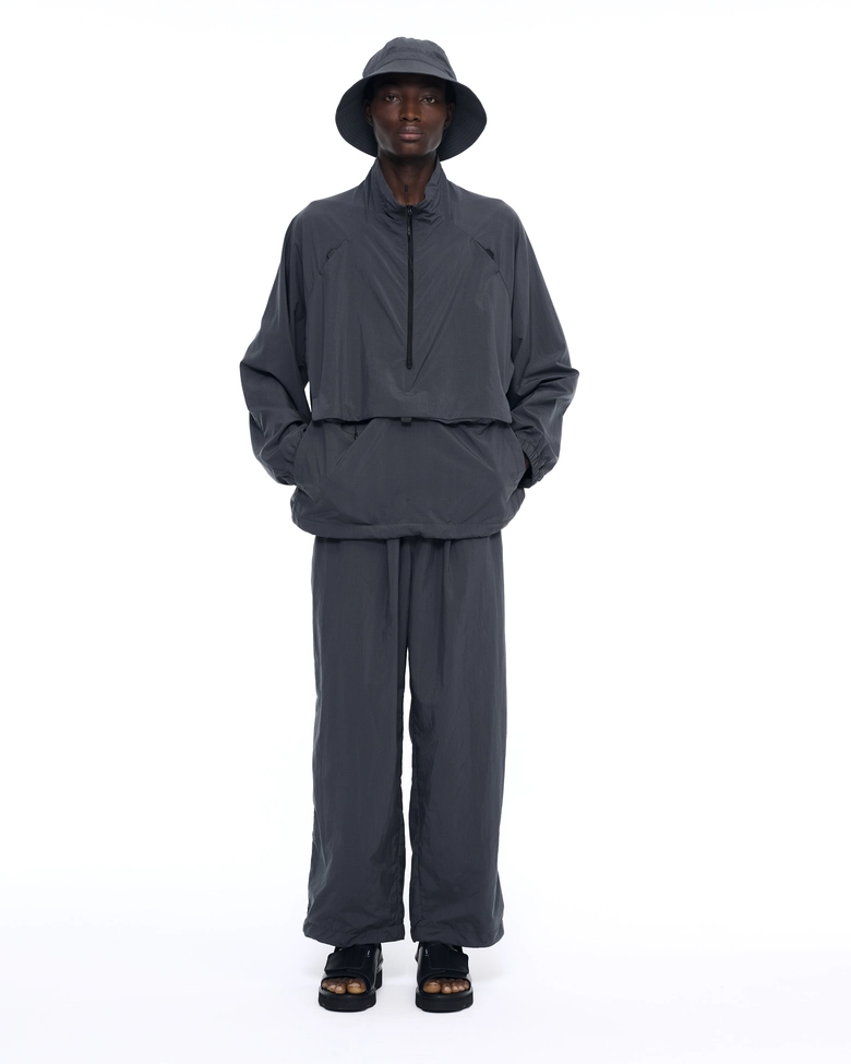 また、ブルゾンと同素材で年間365日の着用を想定したアイテムとして展開される、デタッチャブル仕様によりレングス調整が可能な365PANTSをもとに、年間300日と65日という着用想定へ再定義し、フルレングスの300PANTSとハーフパンツの65PANTSとして独立させた別注モデルを製作。デタッチャブル仕様による切替構造をあえて排除することで設計を簡潔化し、よりミニマルな佇まいへとアップデートしている。本アイテムも<NORMAL EXPERT>の今シーズンの新色で展開される。
