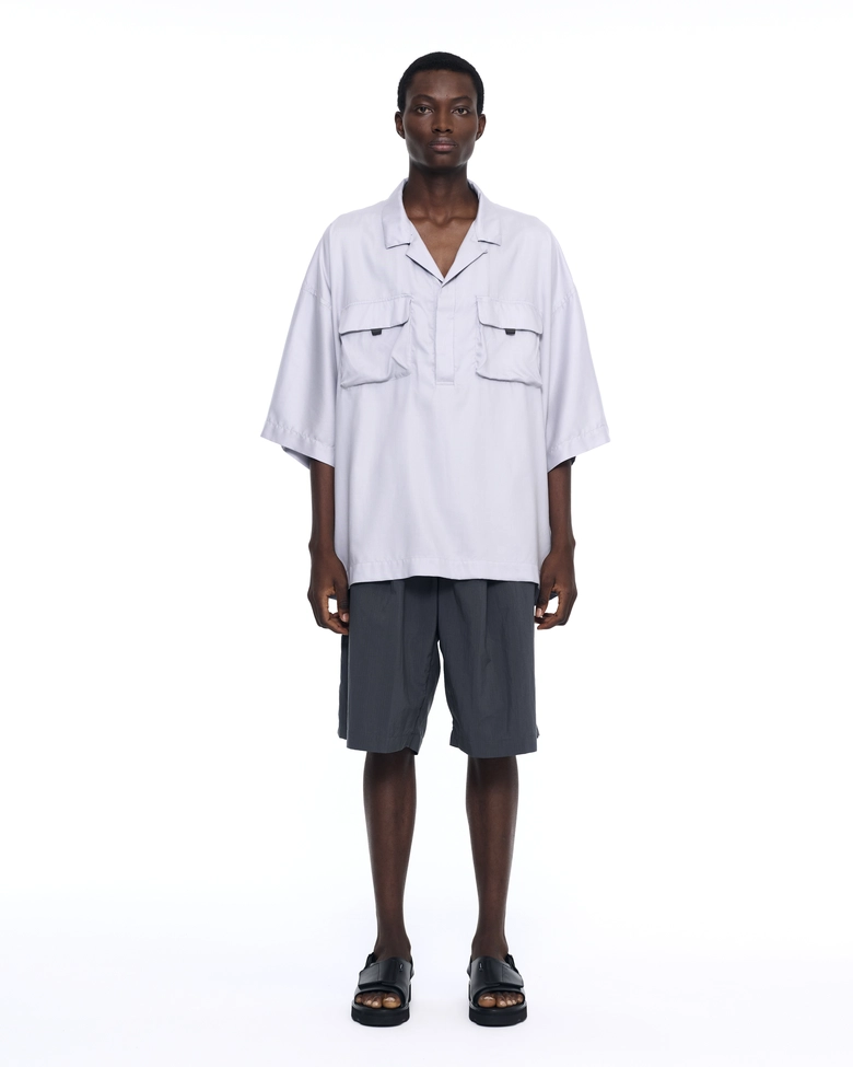 そして、一年のうち65日存在すると定義する真夏日に向けて設計された65SHIRTを<Graphpaper>のオーバーサイズシルエットへと再構築したシャツも25SSシーズンに続き、別注色で展開。コットンの約1.5倍の調湿性を持ち、夏季の寝具にも用いられるテンセル素材を採用することで、高温多湿な環境下でも快適な着用感となっている。ゆとりのある設計によって通気性を高め、盛夏における快適な着用を実現している。