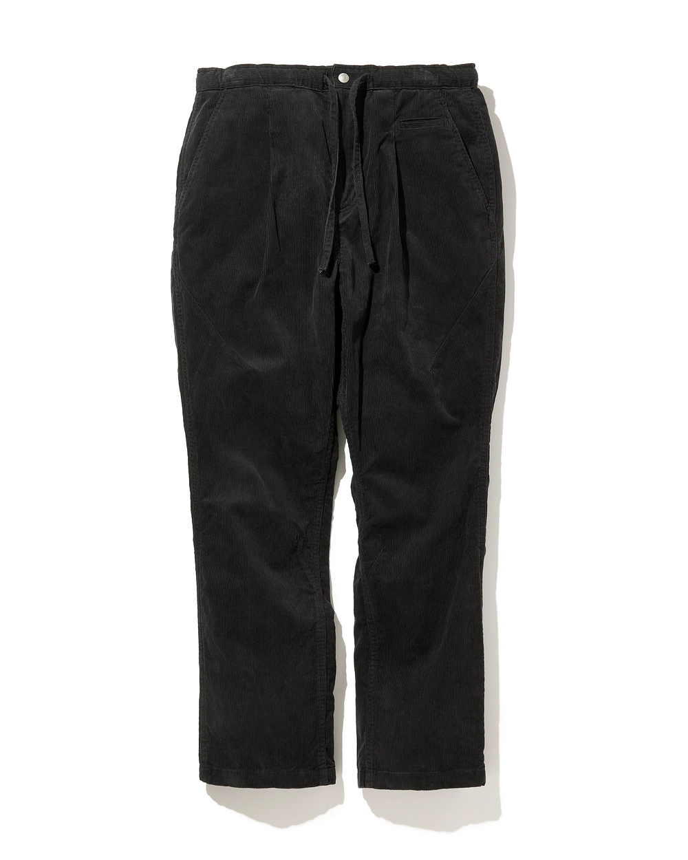 リラックスしたテーパードシルエットのイージーパンツ。腰回りにゆとりを持たせたパターンとフロントのタックがつくる程よいボリューム感が特徴。裾にはドローコードを設けてシルエットの調節が可能。硫化染めのコットンコーデュロイは、着込むことで風合いが増していく。