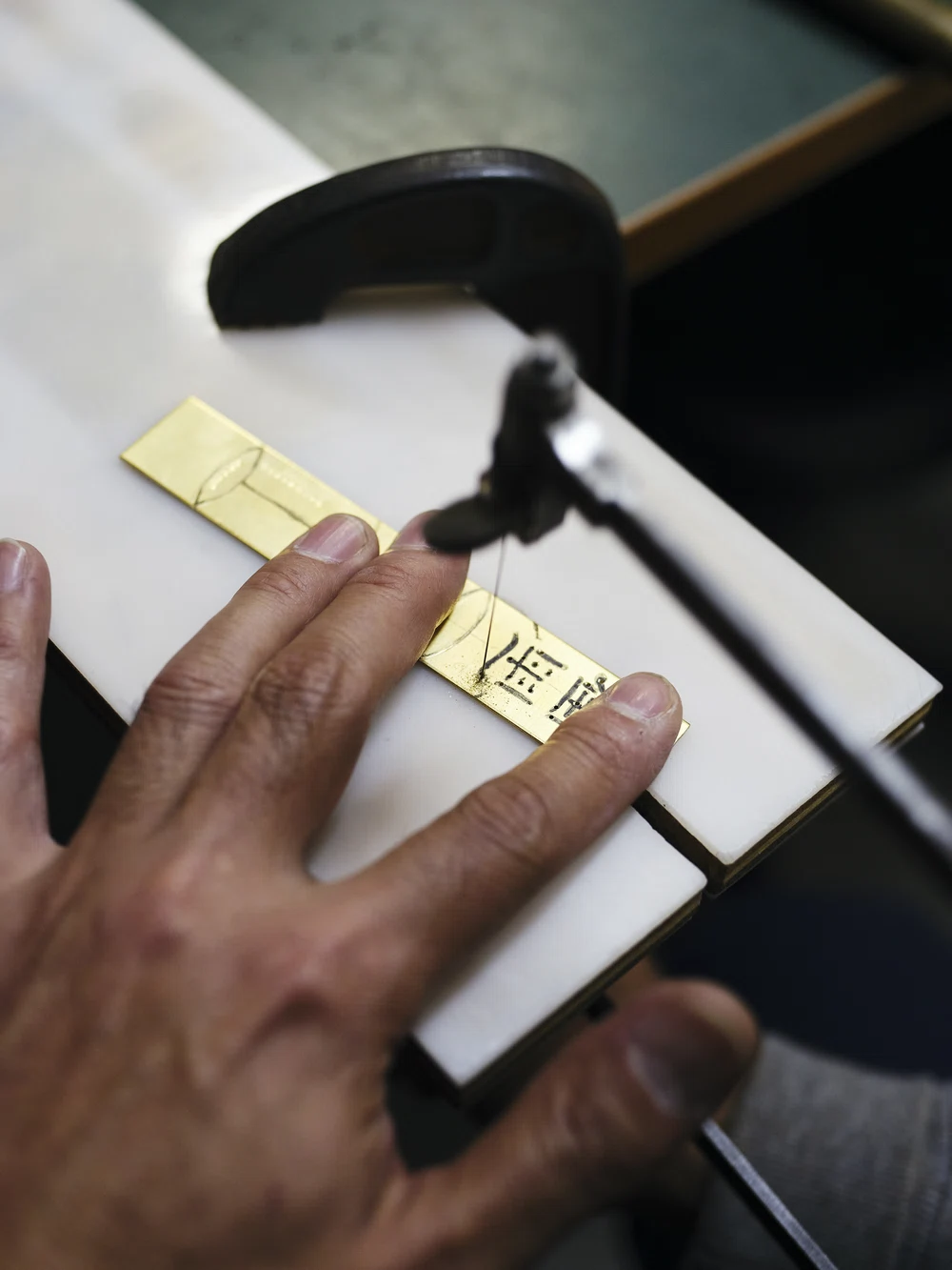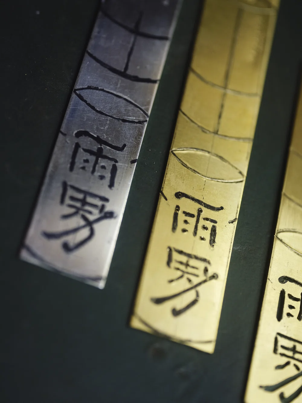 マネークリップは、シルバー925と真鍮の2素材で展開され、いずれも職人による手彫り仕上げ。「雨男」や「茶筒」といった文字には、日本銀行券にも用いられる隷書体が採用されており、静かな存在感を放つデザインが特徴だ。価格はシルバー製が99,000円、真鍮製が66,000円(税込)。