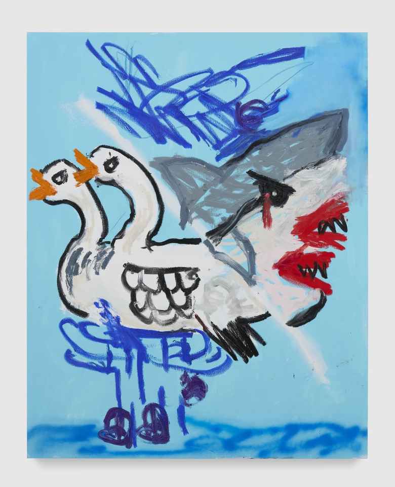 Robert Nava, Bloody Tears, Quak Quak, 2025, oil and acrylic on canvas, 60 × 48 in. (152.4 × 121.9 cm) © Robert Nava, courtesy Pace Gallery