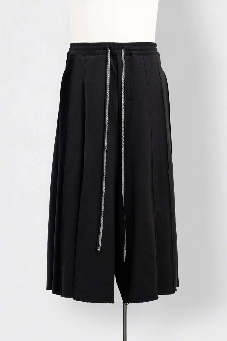 スコットランドで履かれているキルトスカートをイメージして制作したクロップド丈の2タックパンツ。前から見るとスカートに、後ろから見るとパンツに見えるようなシルエットが特徴だ。