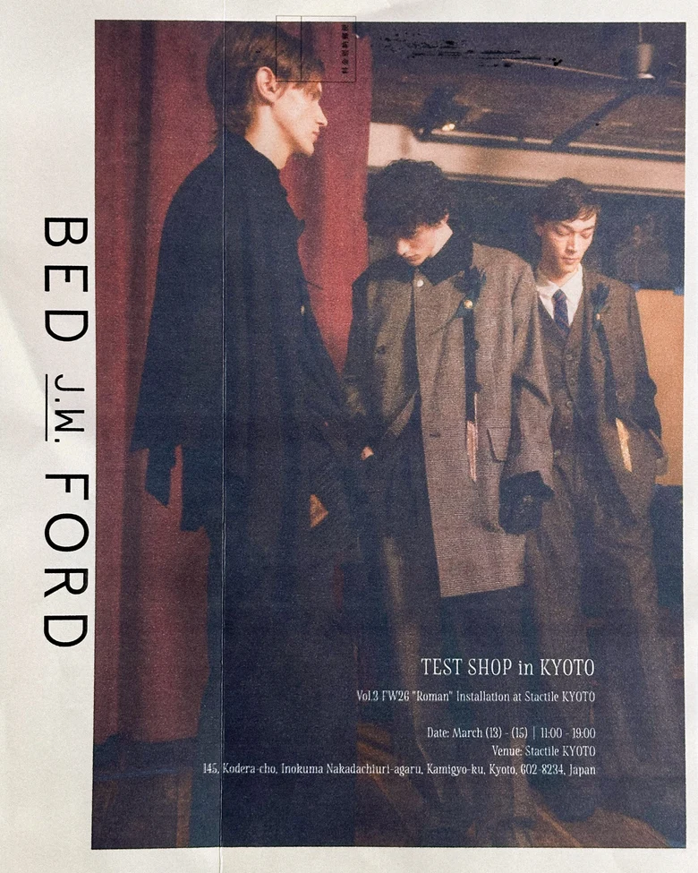 3月13日(金)よりプレオープンを記念し、2025年10月から約2か月にわたり開催された<BED j.w. FORD>の「TEST SHOP」のVol.3を実施。FW26 “Roman”の受注会を開催するとともに、イベントのために制作されたシグネチャー缶バッジを先着で配布する。