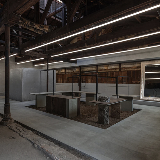 また2階にはポップアップや展示、喫茶機能を備えた空間を設置。地域の記憶を継承しながら人が滞在し交流できる場として再構築されており、衣服と文化、空間と時間を結び直す拠点として京都から新たな創造的循環を生み出すことを目指している。