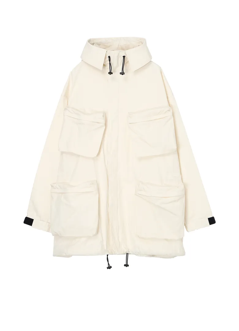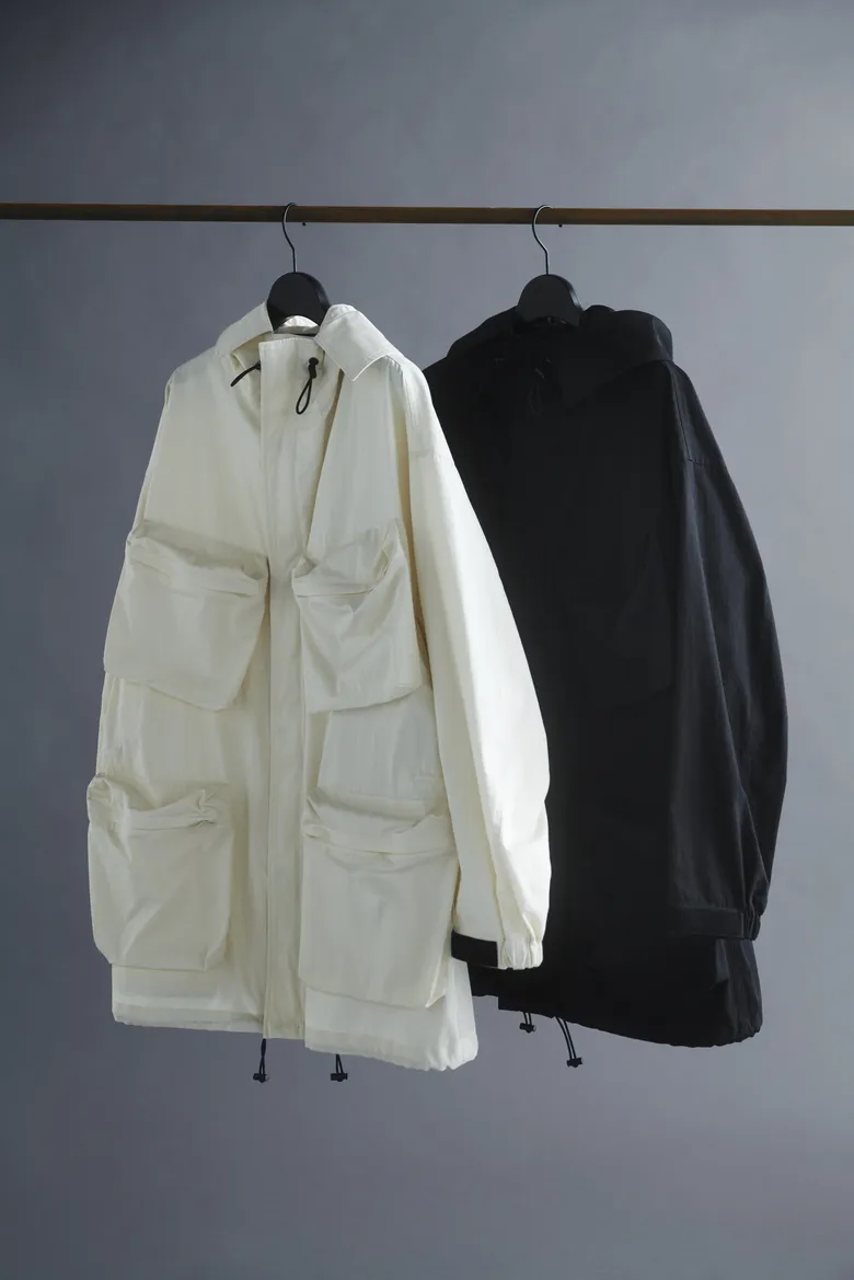 そのほか、高密度ギャバを使用した構築的なジャケットをベースにしたブルゾンも登場。大ポケットを配し、ラフなシワを残した軽やかなフォルムが特徴で、限定カラーはホワイト、通常カラーはブラックで展開する。