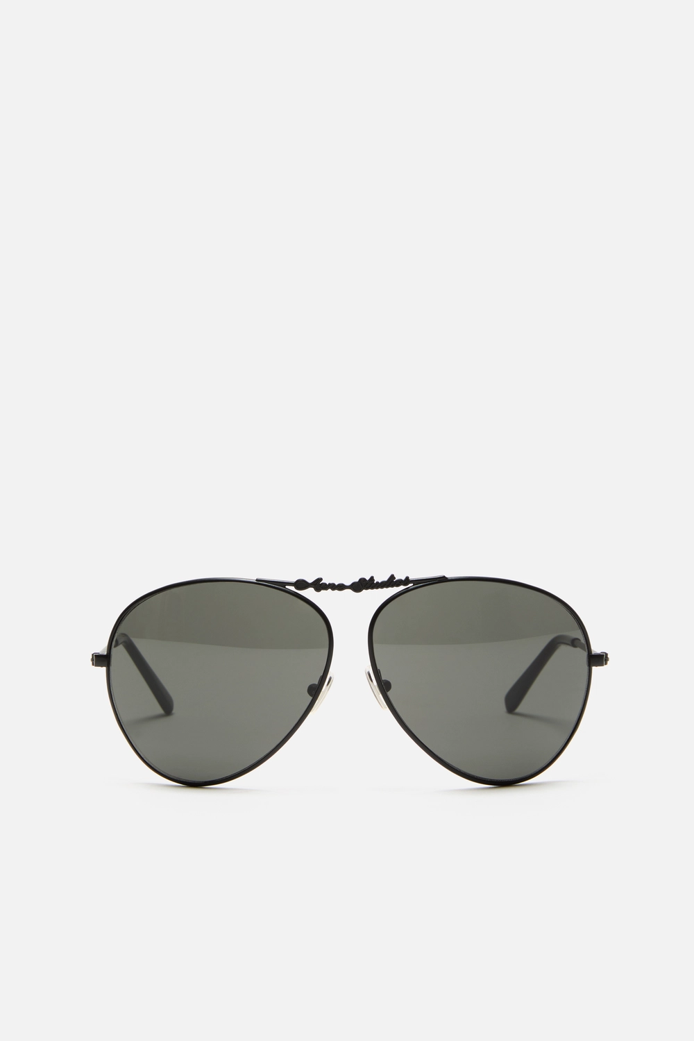 メタルフレームのモデルは、1970年代のアビエーターサングラスを再解釈したデザイン。軽量でありながら存在感を放ち、ナイロンレンズと繊細なフレームの組み合わせにより、機能性と美しさを両立している。カラーバリエーションはブラック、ブラウン/オレンジ、ヴィンテージシルバー(クリアレンズ)などが展開される。