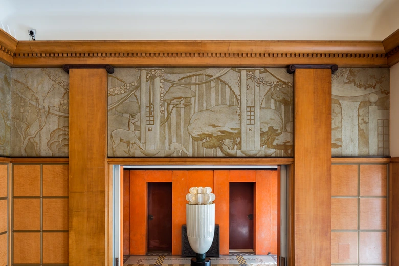 1920年代半ば、フランス・パリで全盛期を迎えたアール・デコに触れた朝香宮鳩彦王と允子妃は、帰国後にその様式を取り入れた邸宅を建設した。1933年に竣工した旧朝香宮邸では、アンリ・ラパンやルネ・ラリックといった芸術家が主要な室内装飾を手がけ、日本の意匠とフランスの装飾美術が交差する空間が形づくられている。