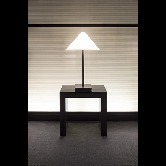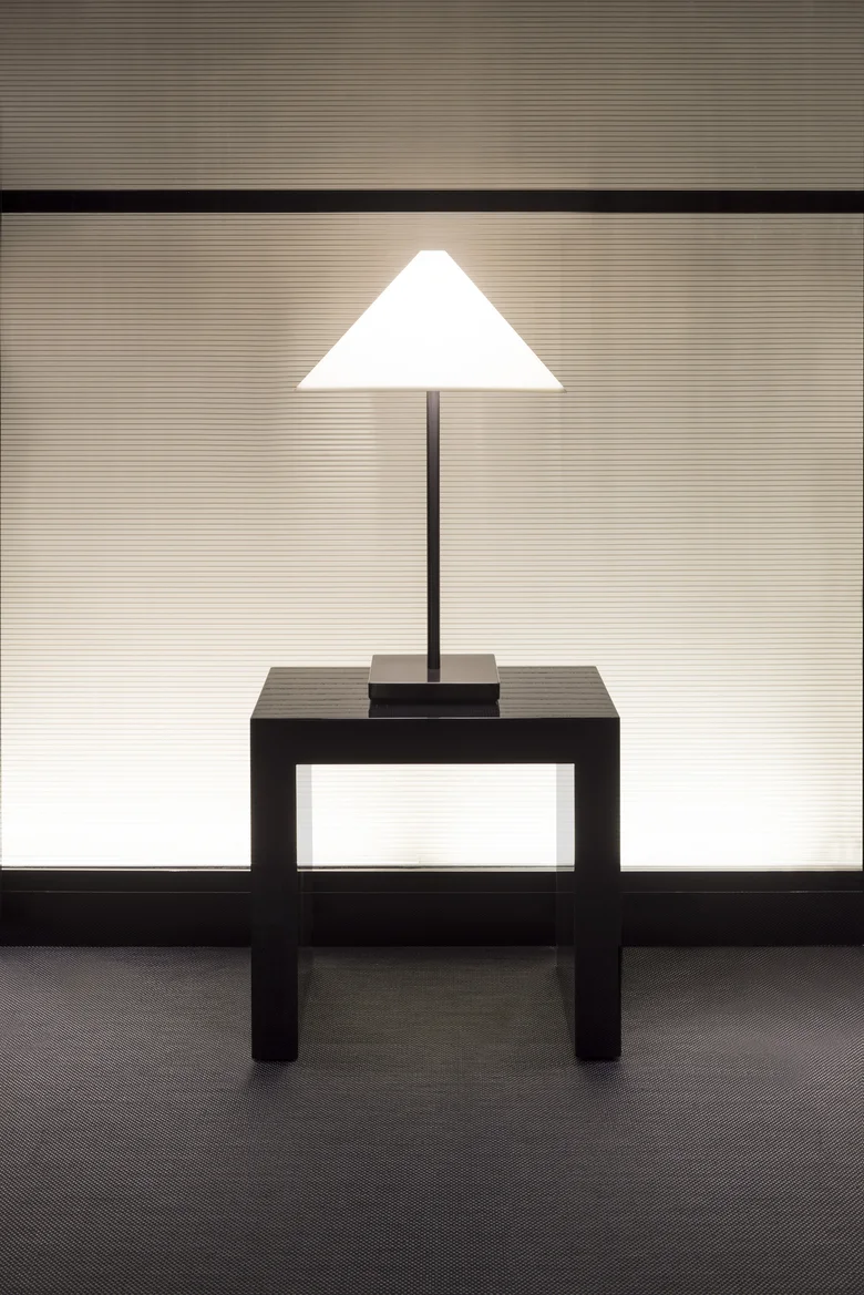 本インスタレーションの核となるのは、1982年にジョルジオ・アルマーニ自らが手がけたテーブルランプ「Logo Lamp(ロゴ ランプ)」だ。デザインスケッチに向き合う手元をやわらかく照らすために生まれたこのランプは、光を的確に落としながらも視界を遮らない独自のフォルムを備えている。機能性と美しさを両立させるアルマーニの哲学が凝縮された存在として、<Armani/Casa>の美学を映し出すアイコンと位置付けられている。