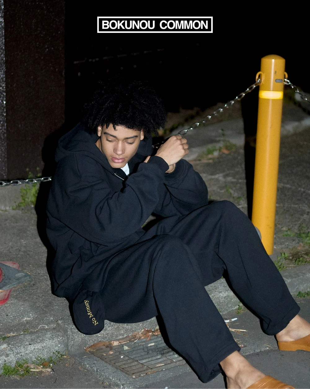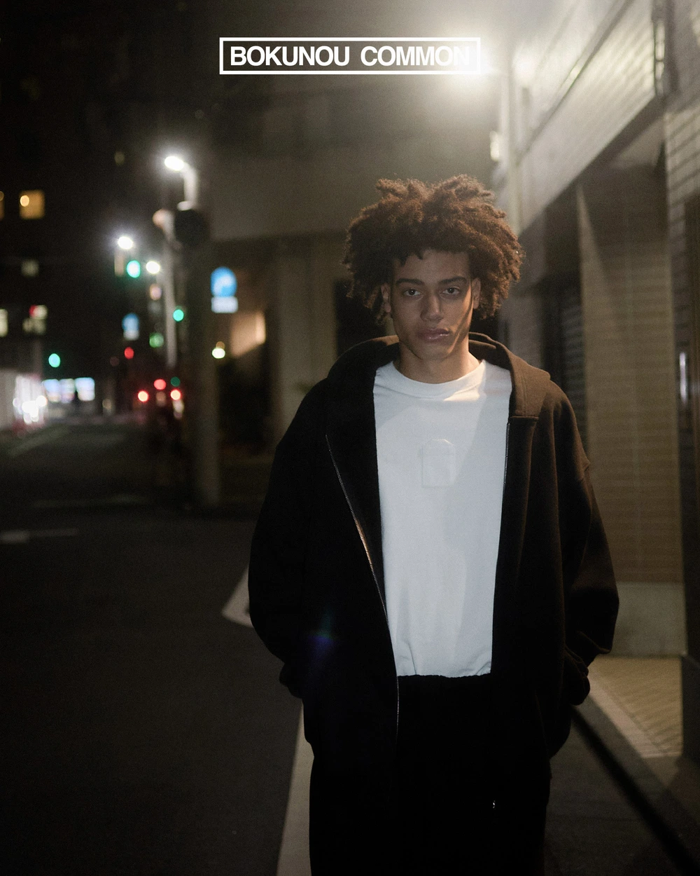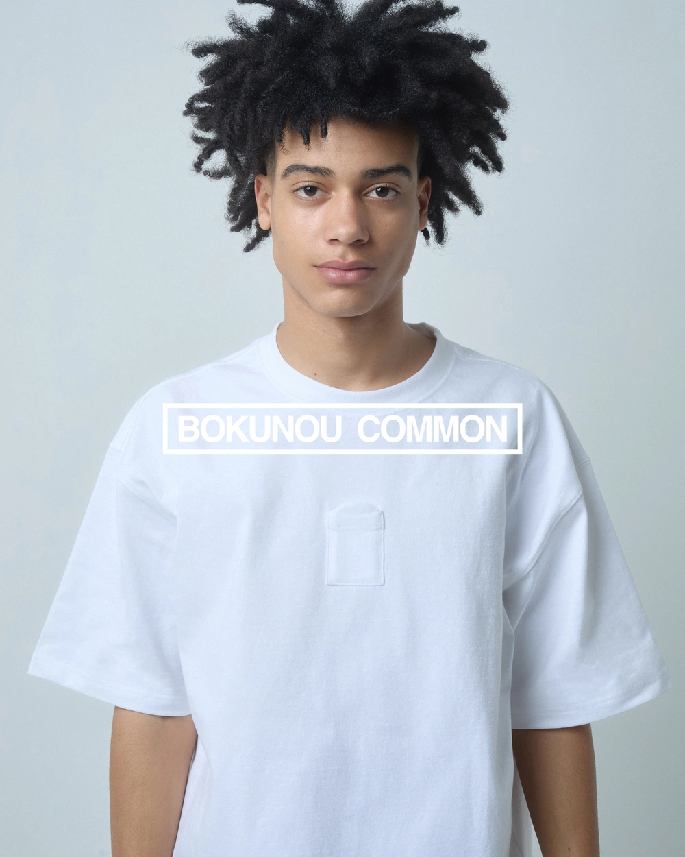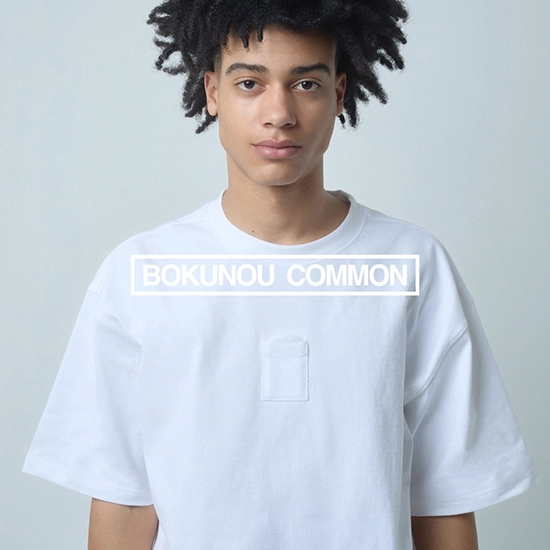 <BOKUNOU COMMON>は、ぼく脳の思考や実験的なアイデアを起点に、COMMON BASEが共有可能なかたちへと展開する洋服の実験ライン。完成や正解を目的とせず、思いがけない組み合わせを日常的な衣服へ落とし込む試みとして展開される。