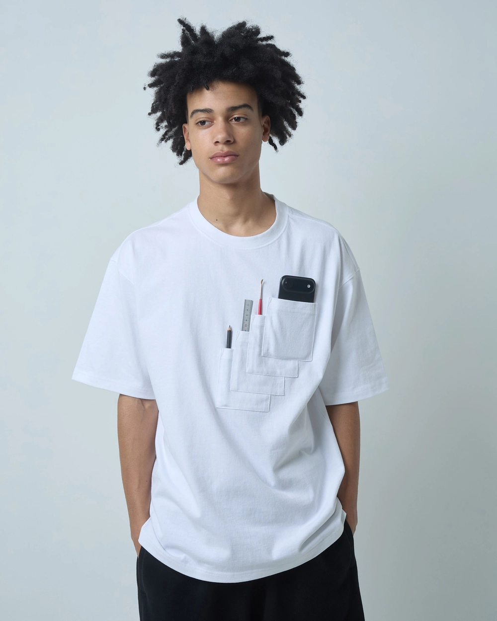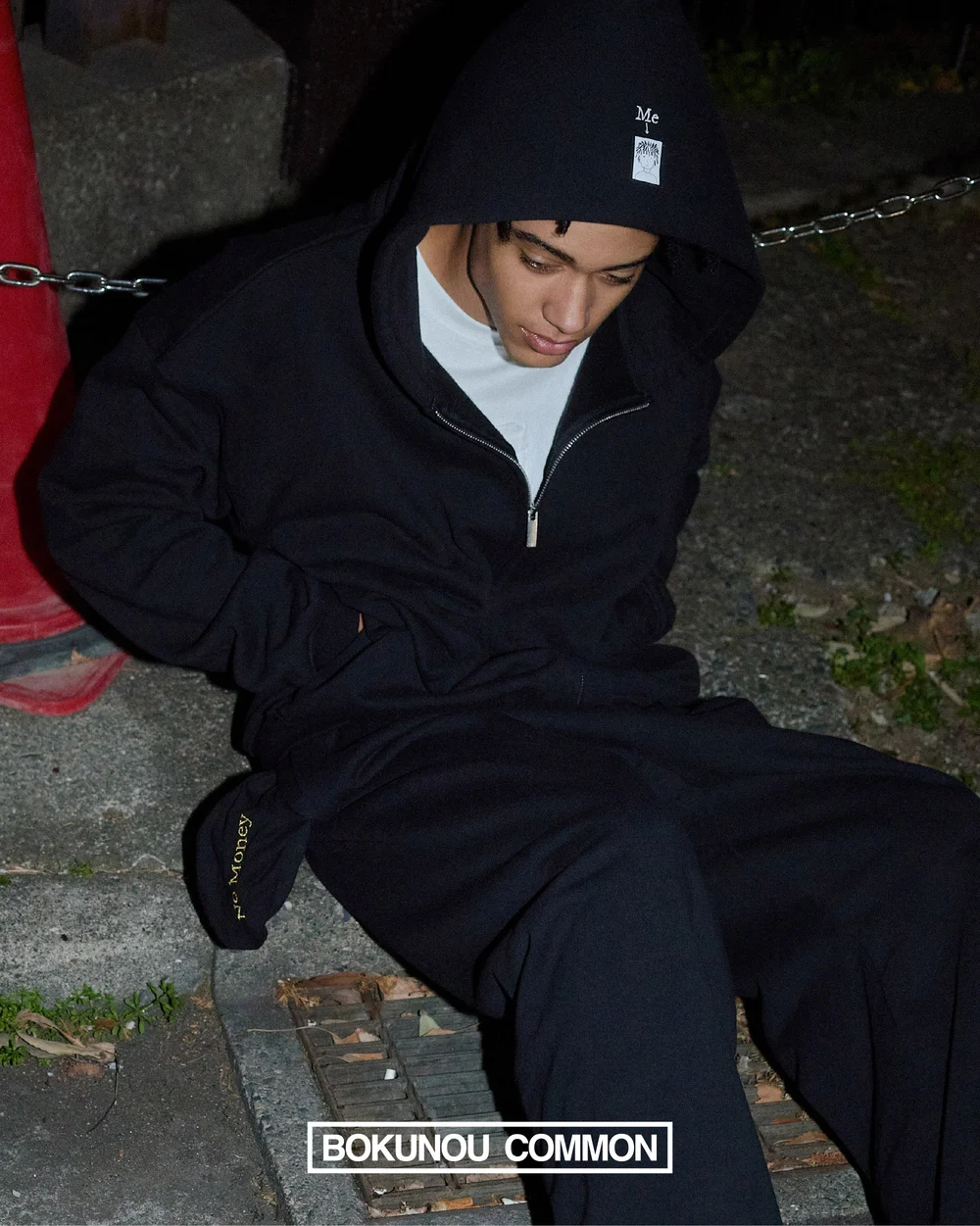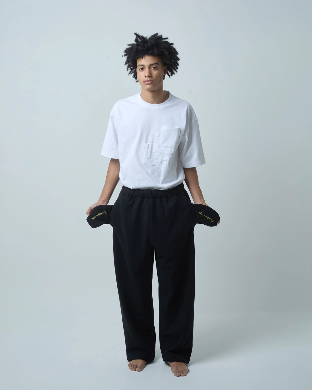 第一弾では、ぼく脳を代表する作品「証明写真入れ付きバラクラバ」をフィーチャーしたフーディーをはじめ、Instagramで大きな反響を得た「No Money」のスウェットパンツ、最新作となるお守り型ポケットを備えたTシャツ、ポケットが連続するウィンドウのように縫い付けられたエラーポケットTシャツなどがラインナップする。