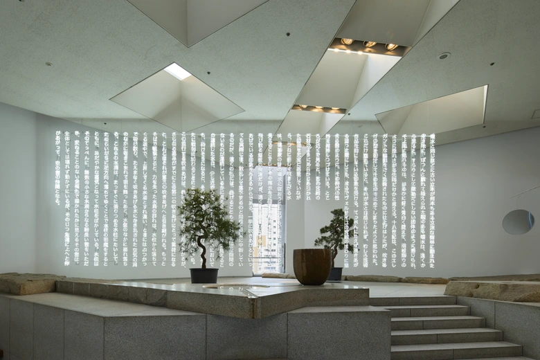 2018年、2023年に続く今回の個展は、過去2回の展示ともつながる三部作の最終章にあたる。石、光、水音によって成り立つ石庭「天国」で、抽象的な大型ネオン作品やプルーストのテキストをもとにした作品がどう立ち現れるのかも、本展の見どころのひとつだ。