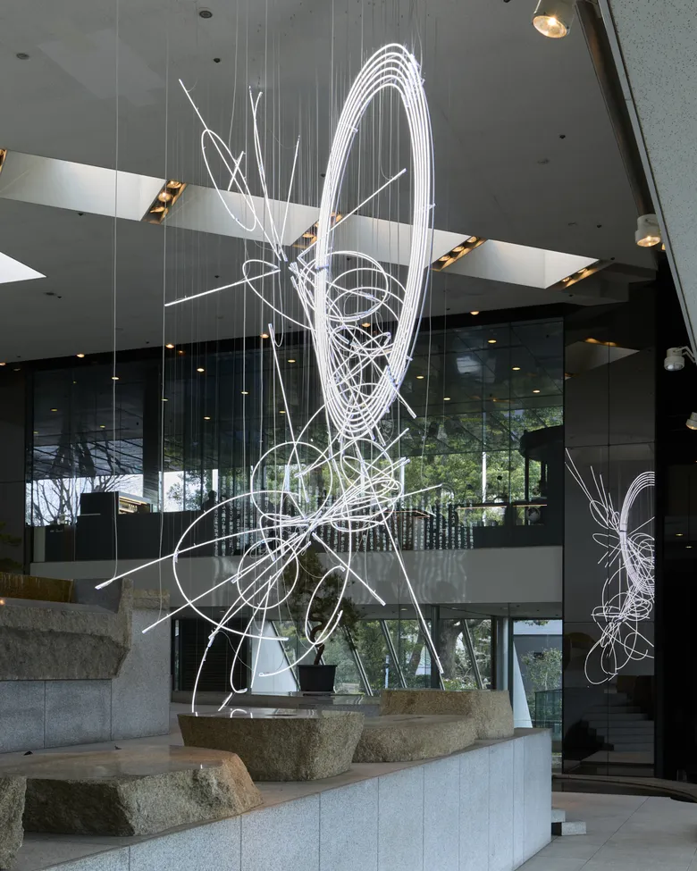 "Drawing in Light (and Time)....suspended", 2020 © Cerith Wyn Evans / Photo: Junya Komatsu Collection of Hirosaki Museum of Contemporary Art)