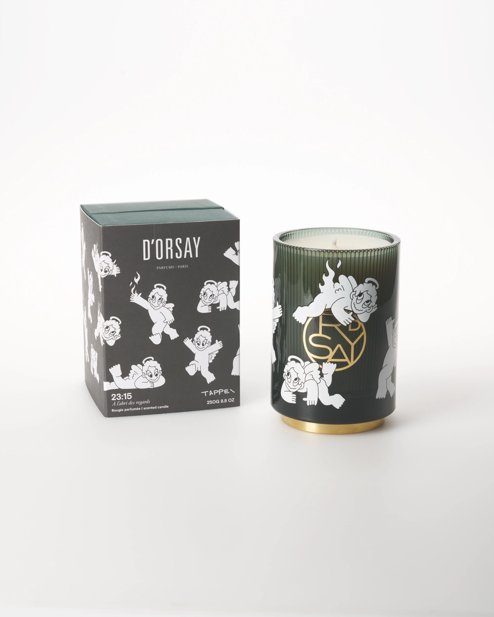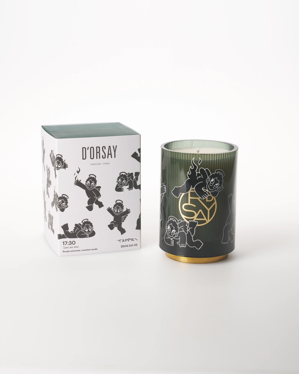 本コラボレーションでは、<D’ORSAY>のホームフレグランスを象徴する「時刻」をテーマにしたキャンドルの中から、TAPPEIが「17:30」と「23:15」の2つの香りをセレクト。オリジナルデザインを施した特別仕様のキャンドルとして展開する。