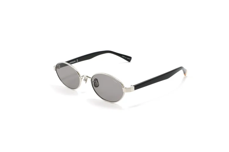 シルバーメタルのフロントにブラックのアセテートテンプルを組み合わせたカラー。コントラストが際立ち、知的でシャープな印象を引き出すモードな仕上がり