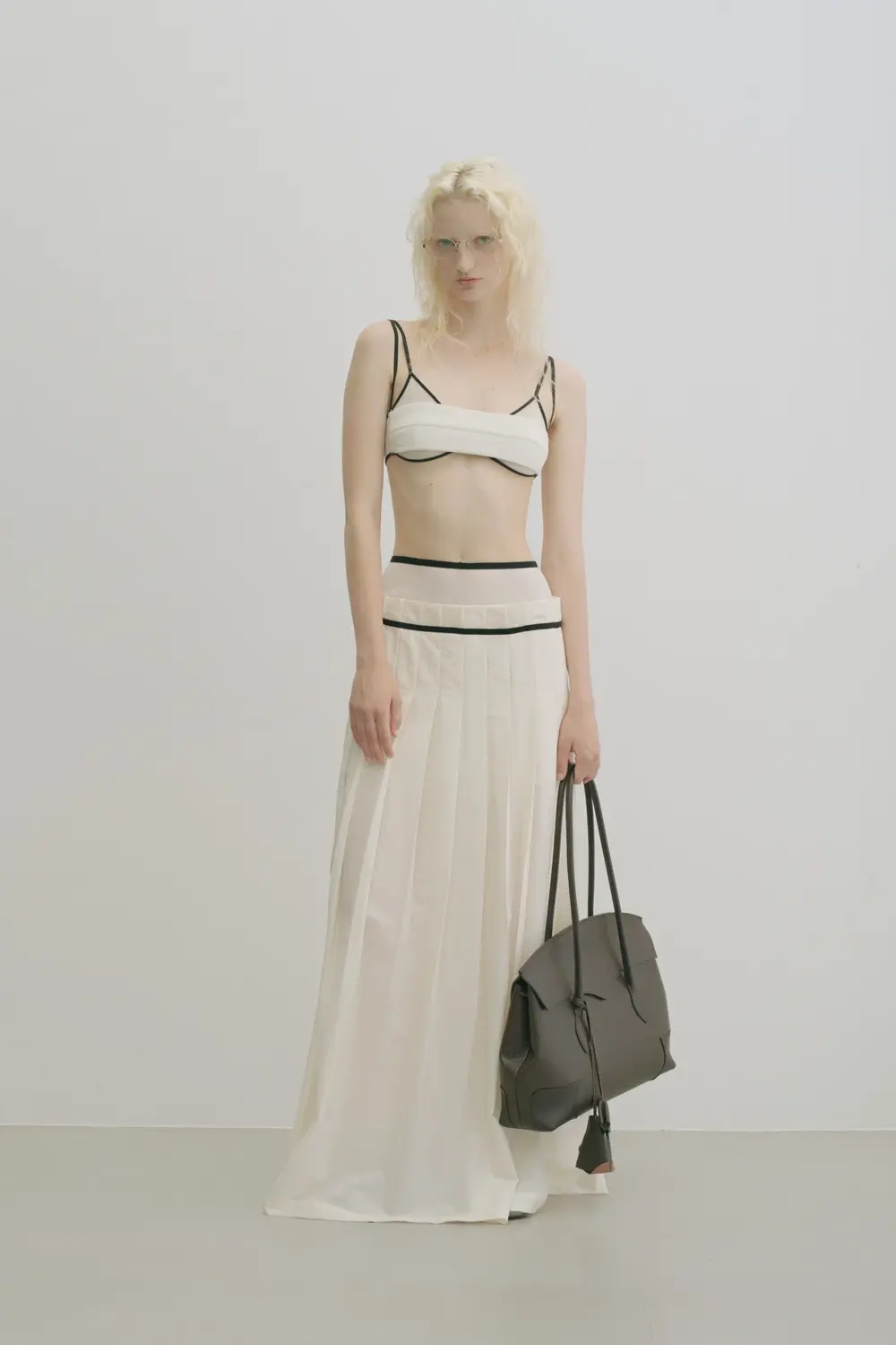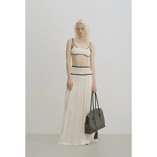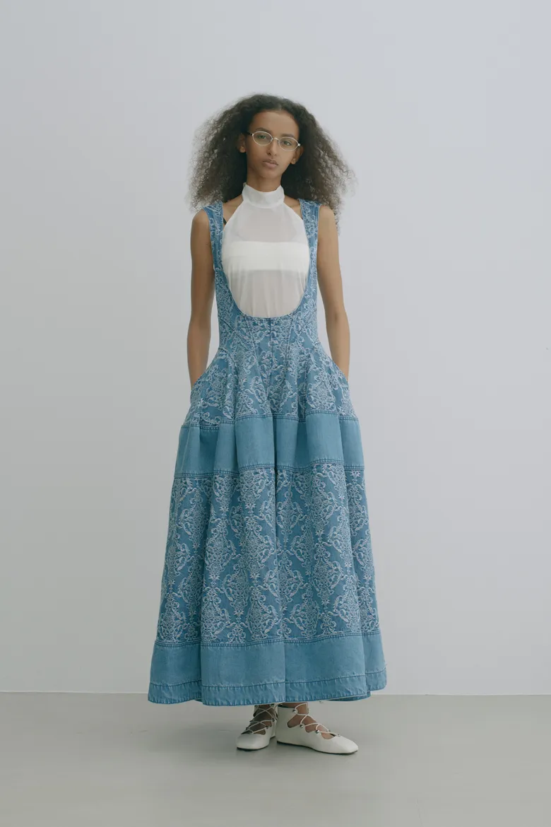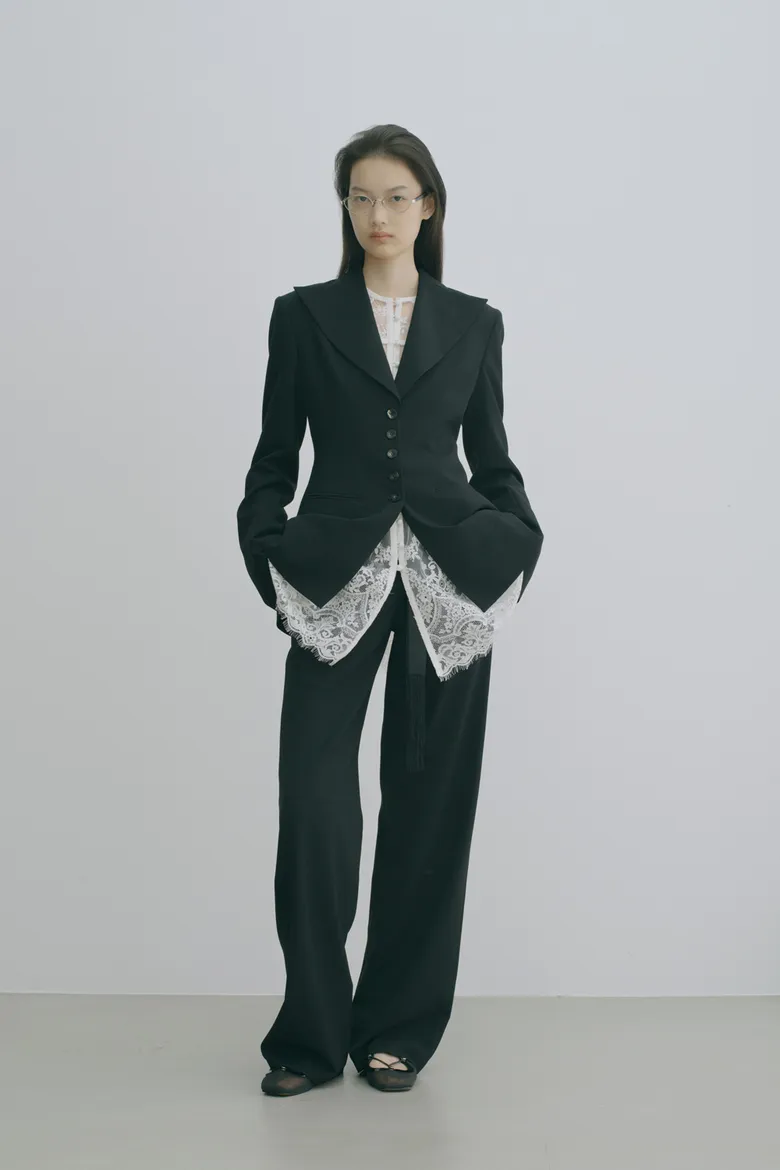 また、テンプルには程よいボリュームのアセテートを採用し、メタルの緊張感に対して柔らかさと奥行きを加えることでモードでありながら女性的な印象を演出。リムには丸みを持たせ、日常にも取り入れやすい軽やかな雰囲気に整えている。左テンプルエンドには<BLANC>のシグネチャーディテールである切り替えが施されている。