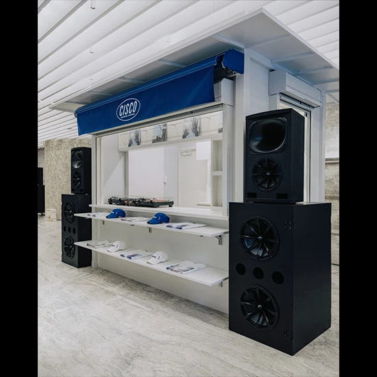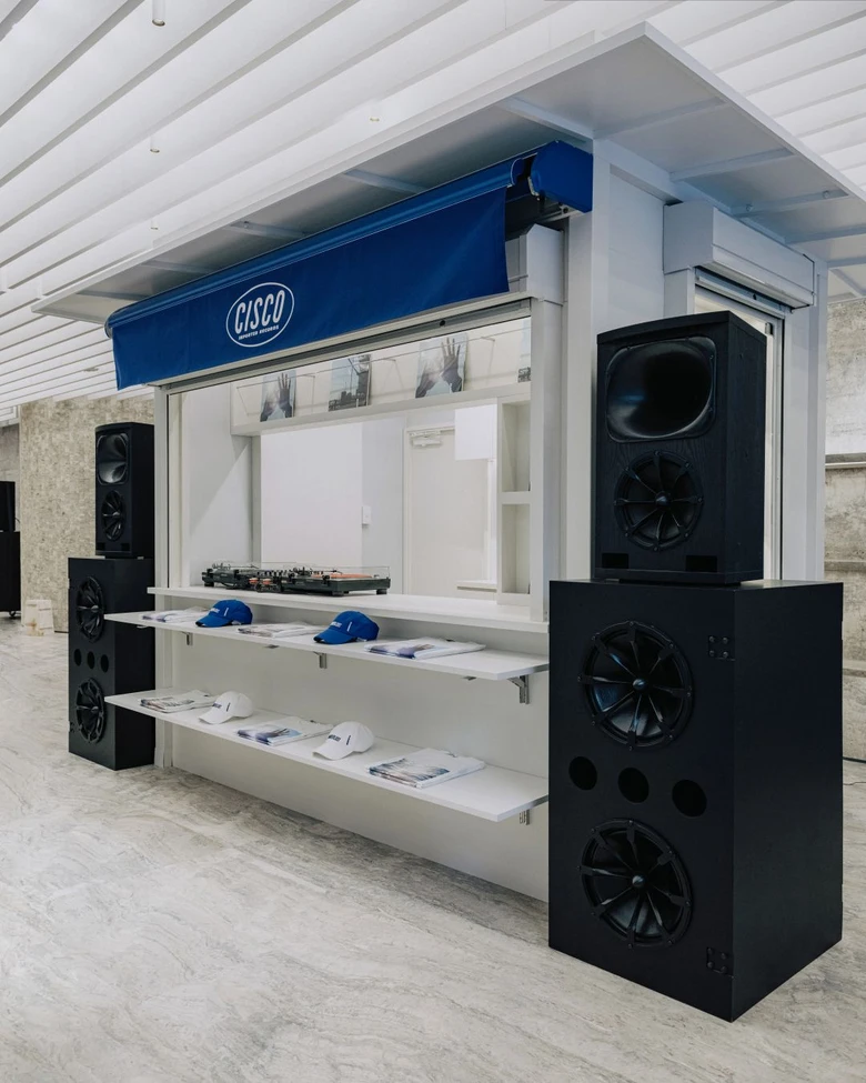 会場となったアートスペースでは、2007年末に閉店したレコードショップ「CISCO(シスコ)」に着想を得た空間を展開した。「CISCOブルー」で彩った棚やタグ、特別なショッピングバッグなどを揃え、当時の内装を再現。一部の商品を試聴できる4つのリスニングステーションに加え、BWVのサウンドシステムも設置した。